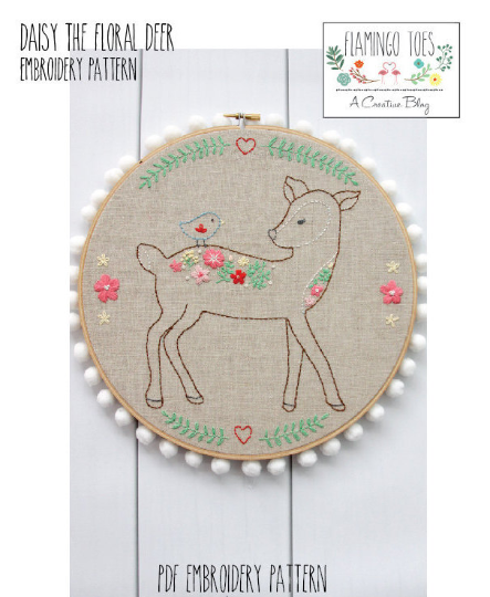 Daisy the Floral Deer is a sweet and whimsical woodland embroidery pattern that is perfect for any decor. She is easy to stitch up - perfect for beginners or experienced stitchers.