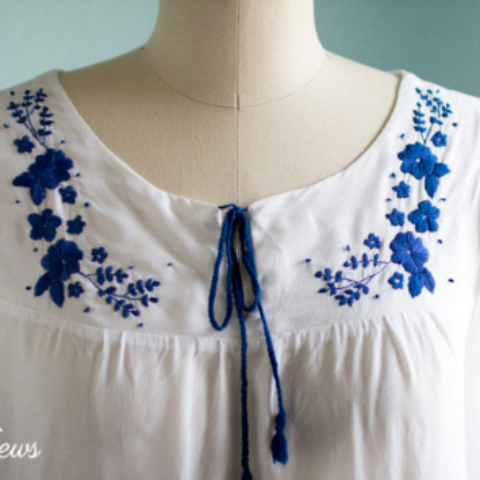The patterns were designed to work with the Valetta Top from Blank Slate Patterns. This top is designed with a sweet yoke and can be made sleeveless or with 3/4 length sleeves with small cuffs. The embroidery patterns are perfect for adding pretty floral style to the yoke and/or cuffs of the top.