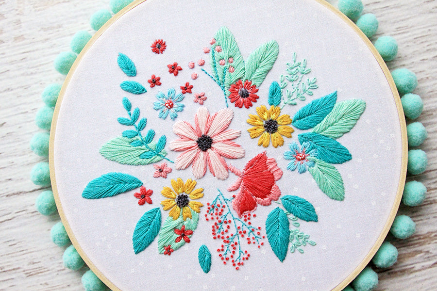 This embroidery design is inspired by the main florals in the collection and I think it would be such a fun addition to any decor.