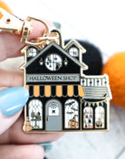 Step into spooky season with the newest stop on our Main Street series—the Halloween Shop! This detailed enamel charm features a vintage-style storefront complete with pumpkins, potions, and glowing windows ready for trick-or-treat night. With its shiny gold trim and orange-and-black details, it’s the perfect accessory to celebrate your love of Halloween.