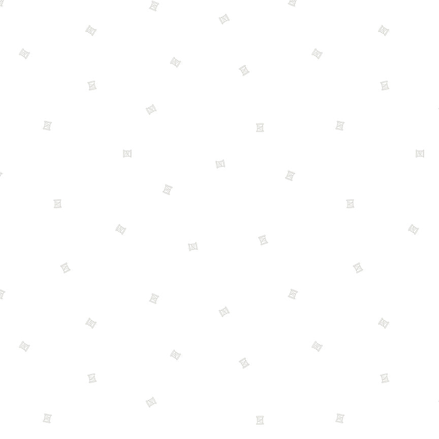 This darling print is a white on white version of one of my Hush Hush prints, Sweet Spools, The print features small thread spools scattered over the white background.