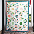 The quilt kit includes all fabrics need to make the quilt top and binding as well as the pattern and acrylic templates.