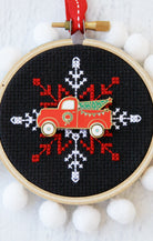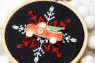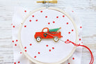 Christmas stitching never looked cuter! This little vintage truck needle minder is all loaded up with a Christmas tree and ready to add some cute flair to all your stitching projects!