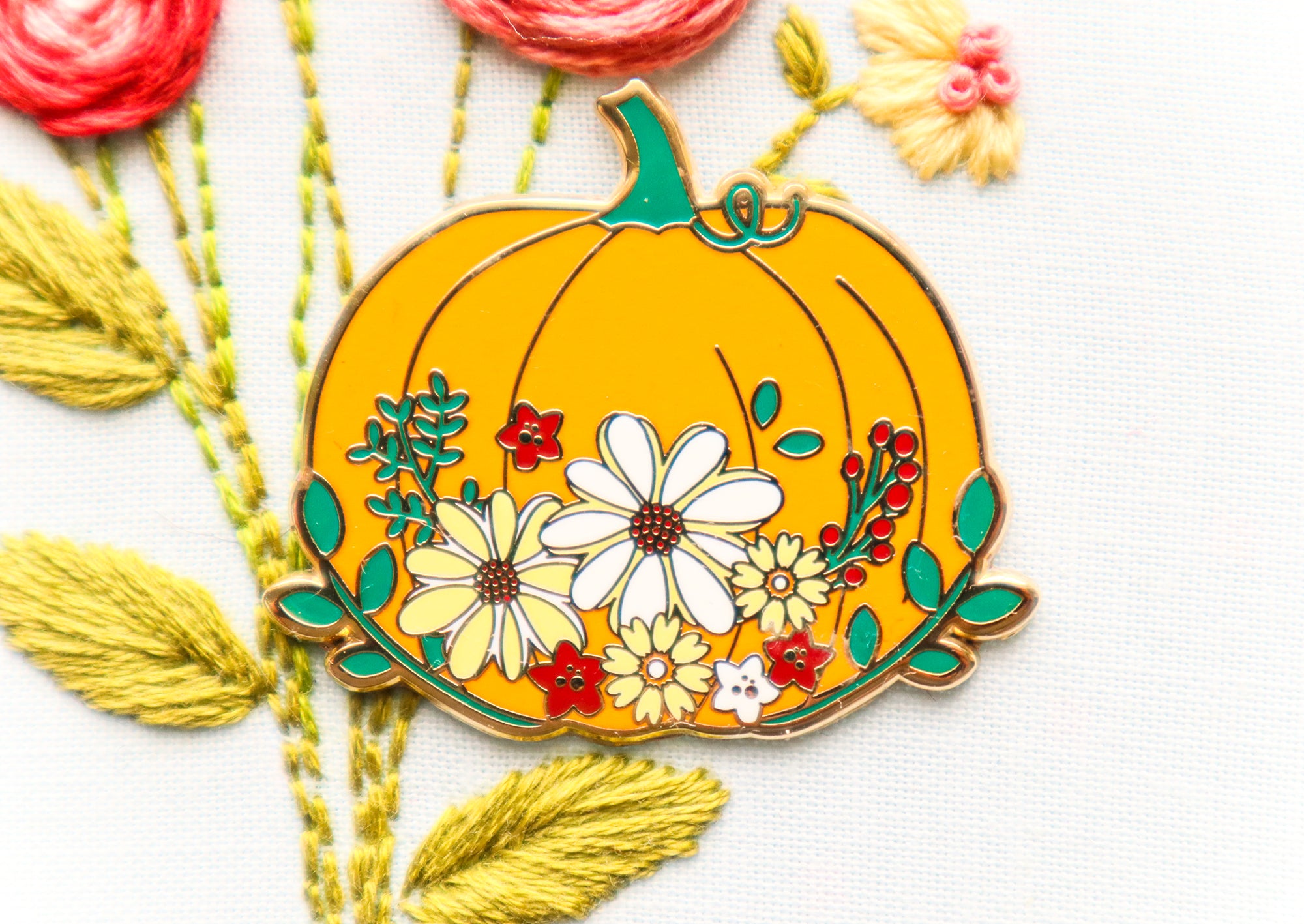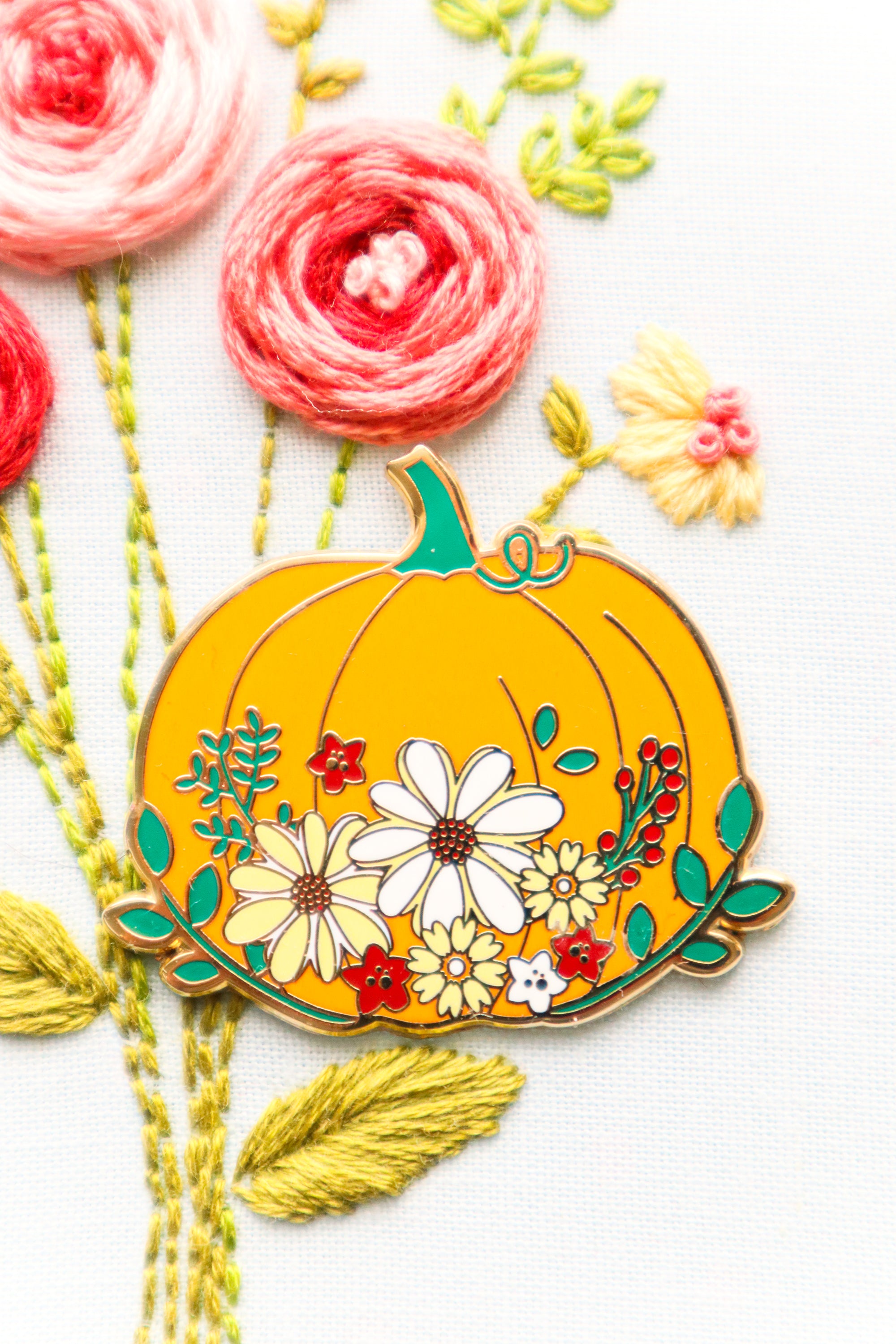 This darling Floral Pumpkin is perfect for all your Fall and Halloween stitching projects! Covered with my fun florals, this sweet pumpkin is perfect for holding your needle while you aren't stitching!