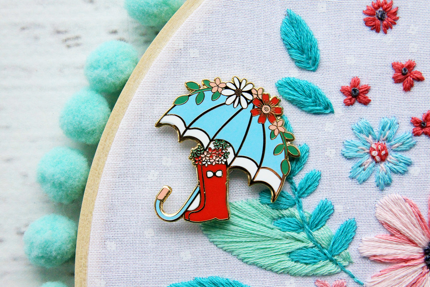 This sweet Floral Umbrella and Boots will have you singing in the rain as you stitch up all your projects!