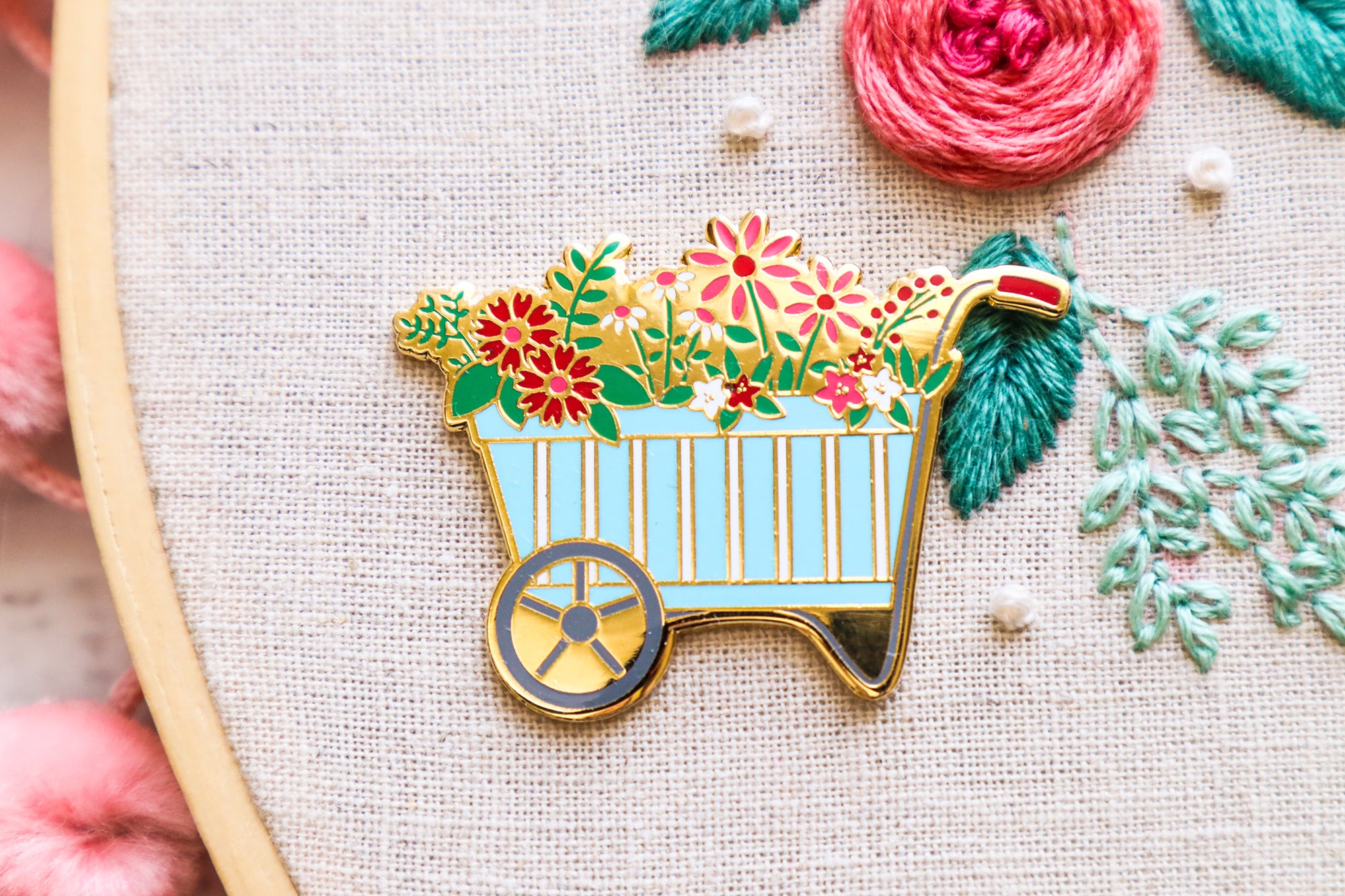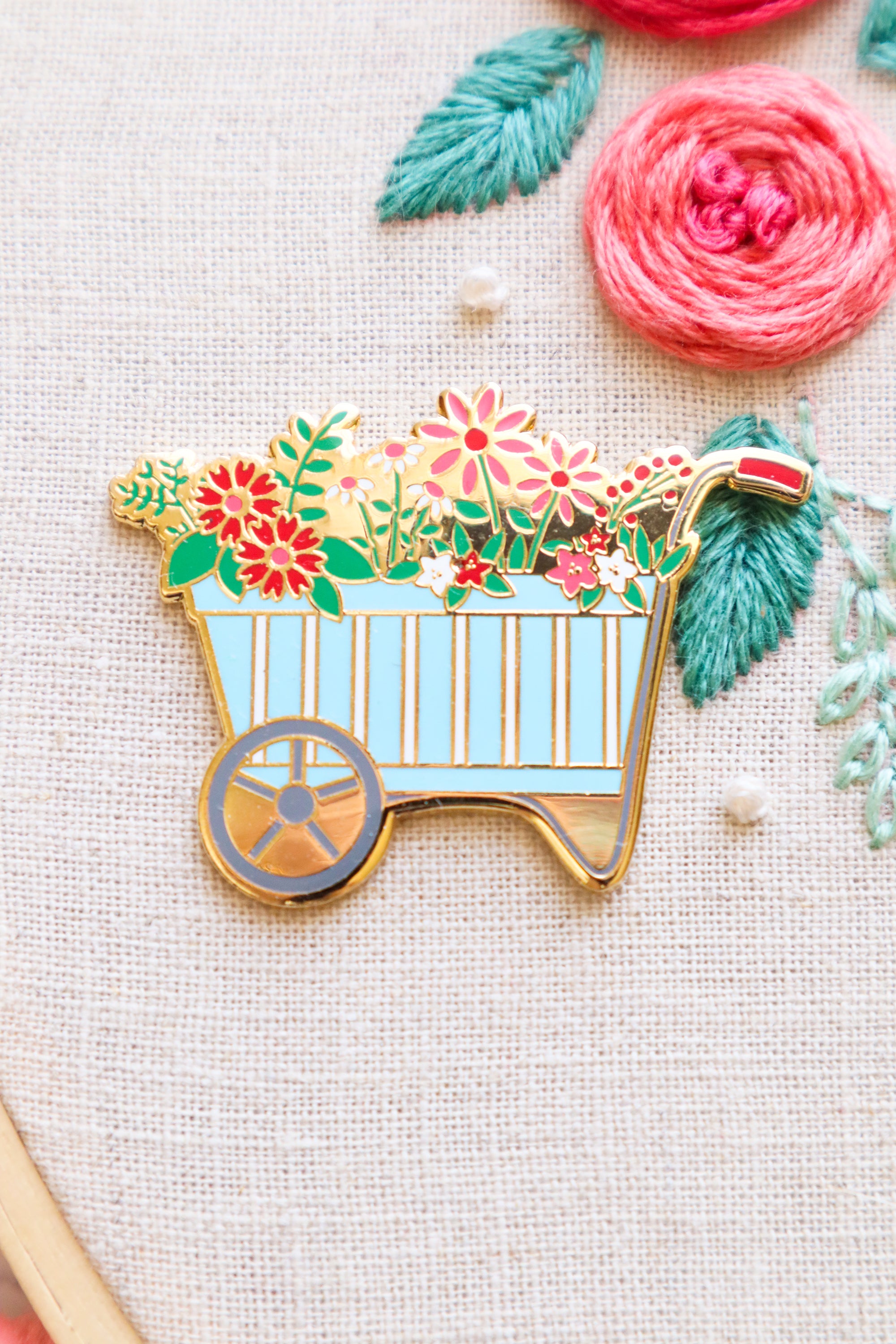 Get ready for all the flowers with this sweet Spring Floral Wheelbarrow Magnetic Needle Minder! I designed this vintage wheelbarrow with a sweet blue and white stripe and filled it with all sorts of flowers! This fun wheelbarrow will brighten up all your stitchy projects!