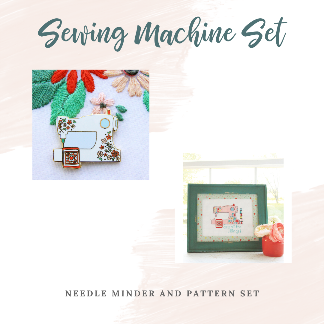 Celebrate your love of making with the Sew All the Things Pattern & Needle Minder Set! This creative set includes the Sew All the Things cross stitch pattern, featuring a floral sewing machine stitching a sweet little heart quilt and the phrase “Sew All the Things,” paired with the coordinating Sewing Machine needle minder.