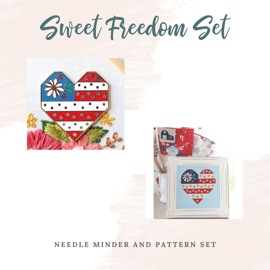 Celebrate patriotic stitching with the Sweet Freedom Pattern & Needle Minder Set! This meaningful set includes the Sweet Freedom cross stitch pattern, featuring a charming heart-shaped flag design, paired with the coordinating Sweet Freedom needle minder.