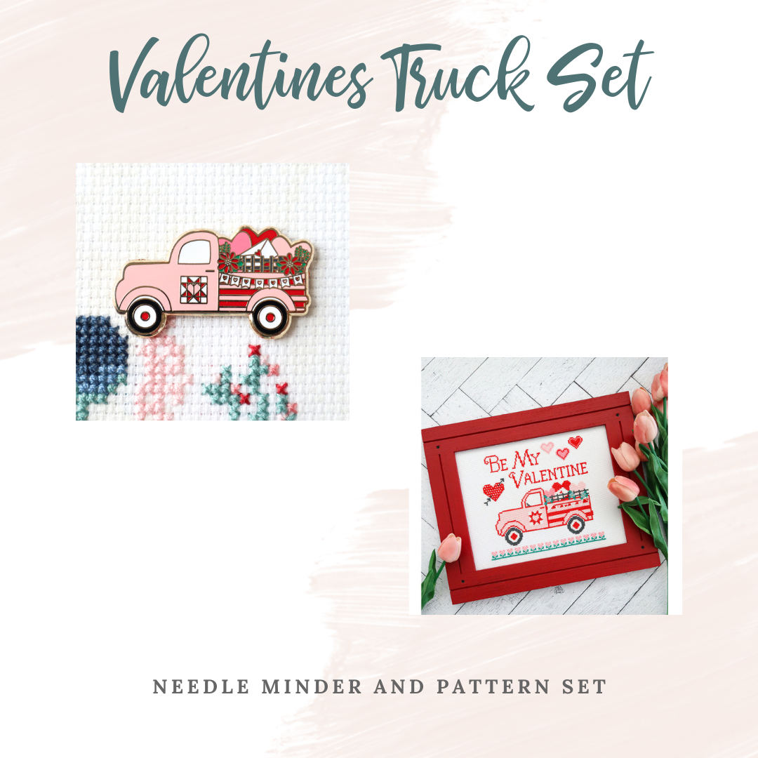 This set offers a lovely savings compared to purchasing the pattern and needle minder separately and keeps everything you need together for a cozy, love-filled project. The cheerful vintage truck needle minder adds a fun, functional touch to your stitching while perfectly complementing the finished design.