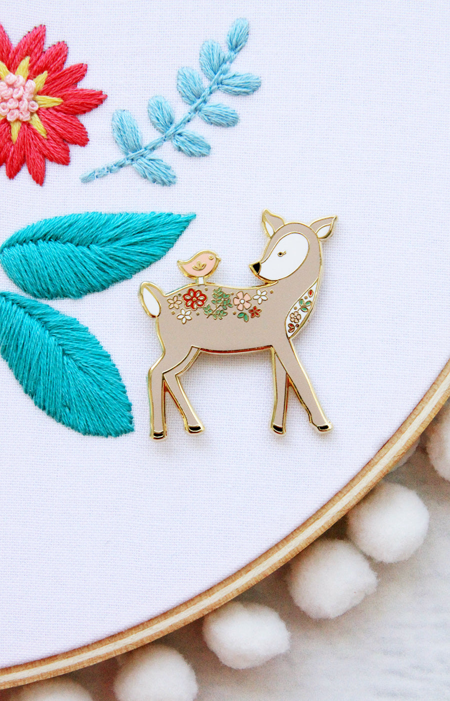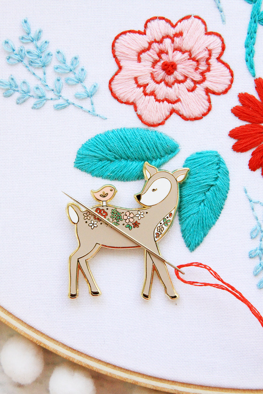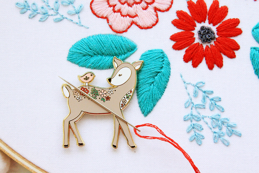 This sweet Floral Deer and Birdie Friend Needle Minder are sure to add some fun flair to any embroidery project you're working on!