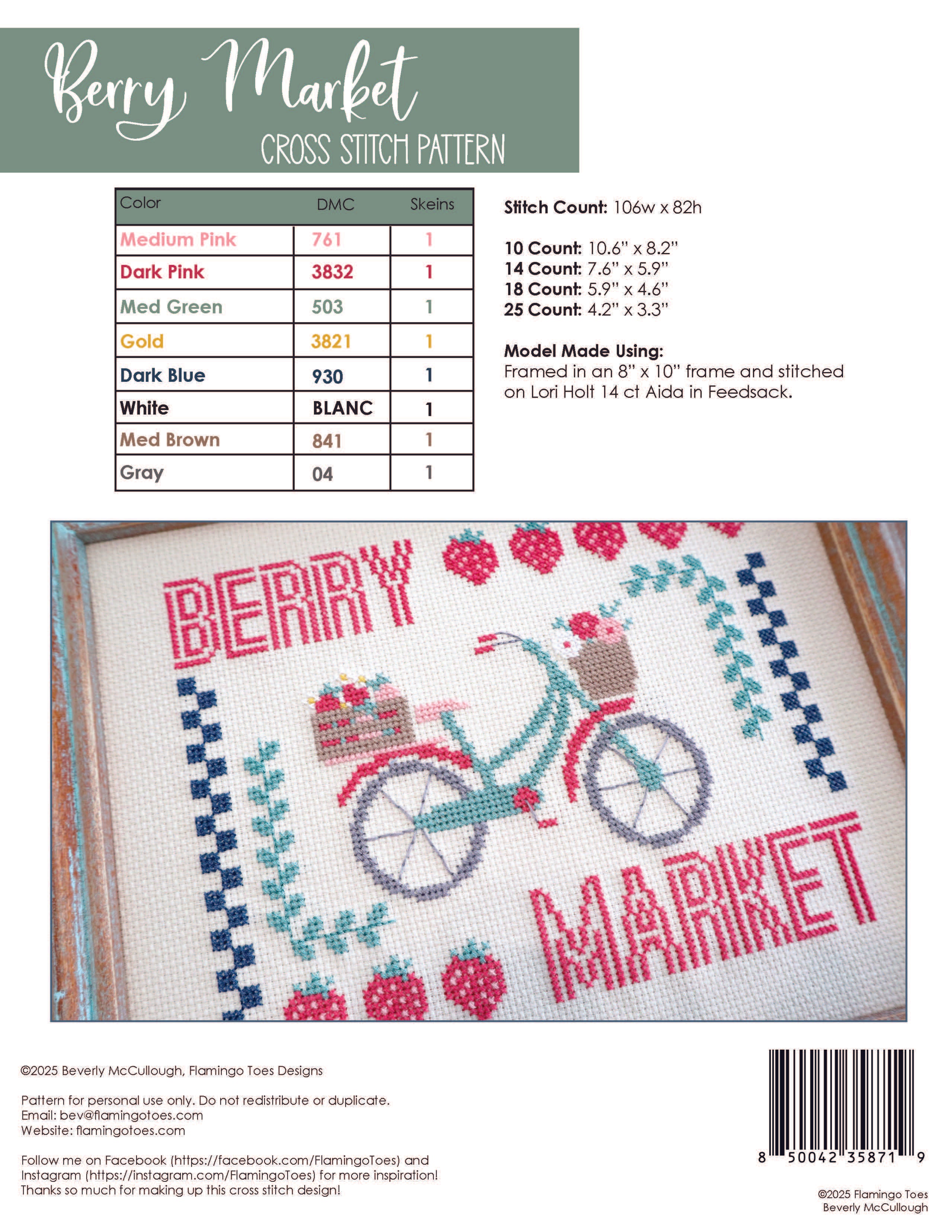 Get ready for Berry Season with this darling Berry Market Cross Stitch Chart! The chart is so fun to stitch up and looks great in any season.