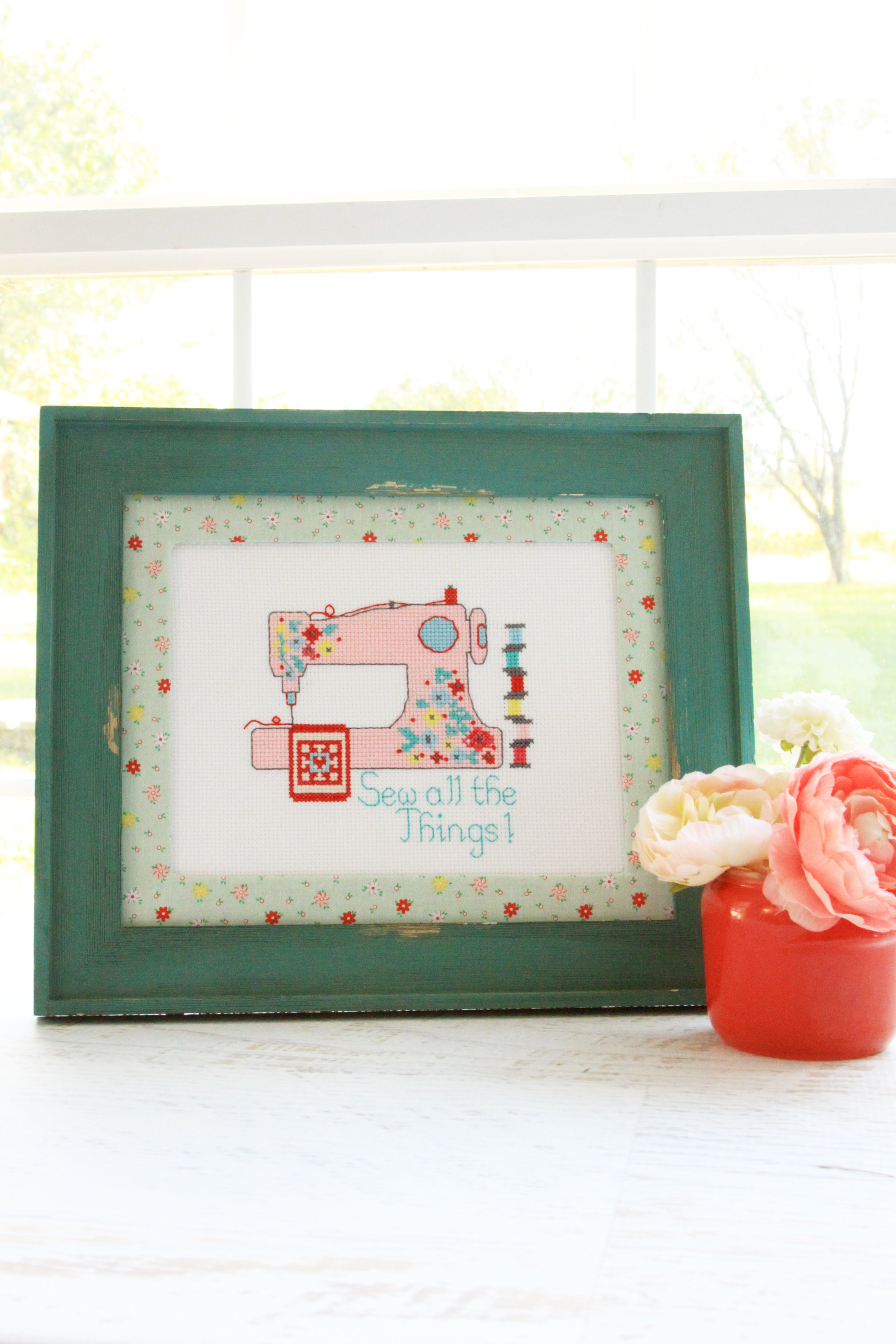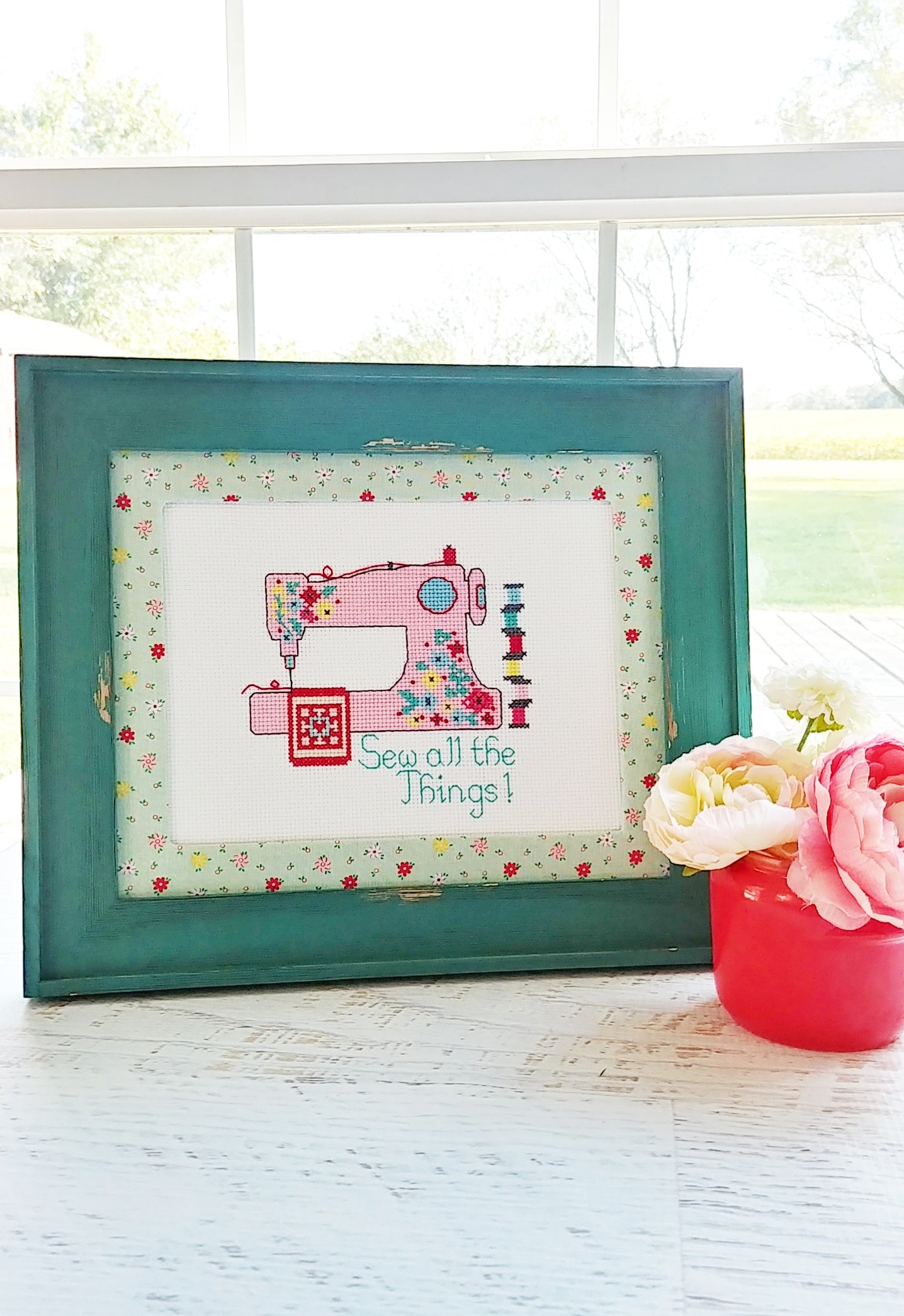 This darling floral Sewing Machine cross stitch pattern is the perfect way to show off your love for sewing and quilting! It would look so sweet in a sewing room too!