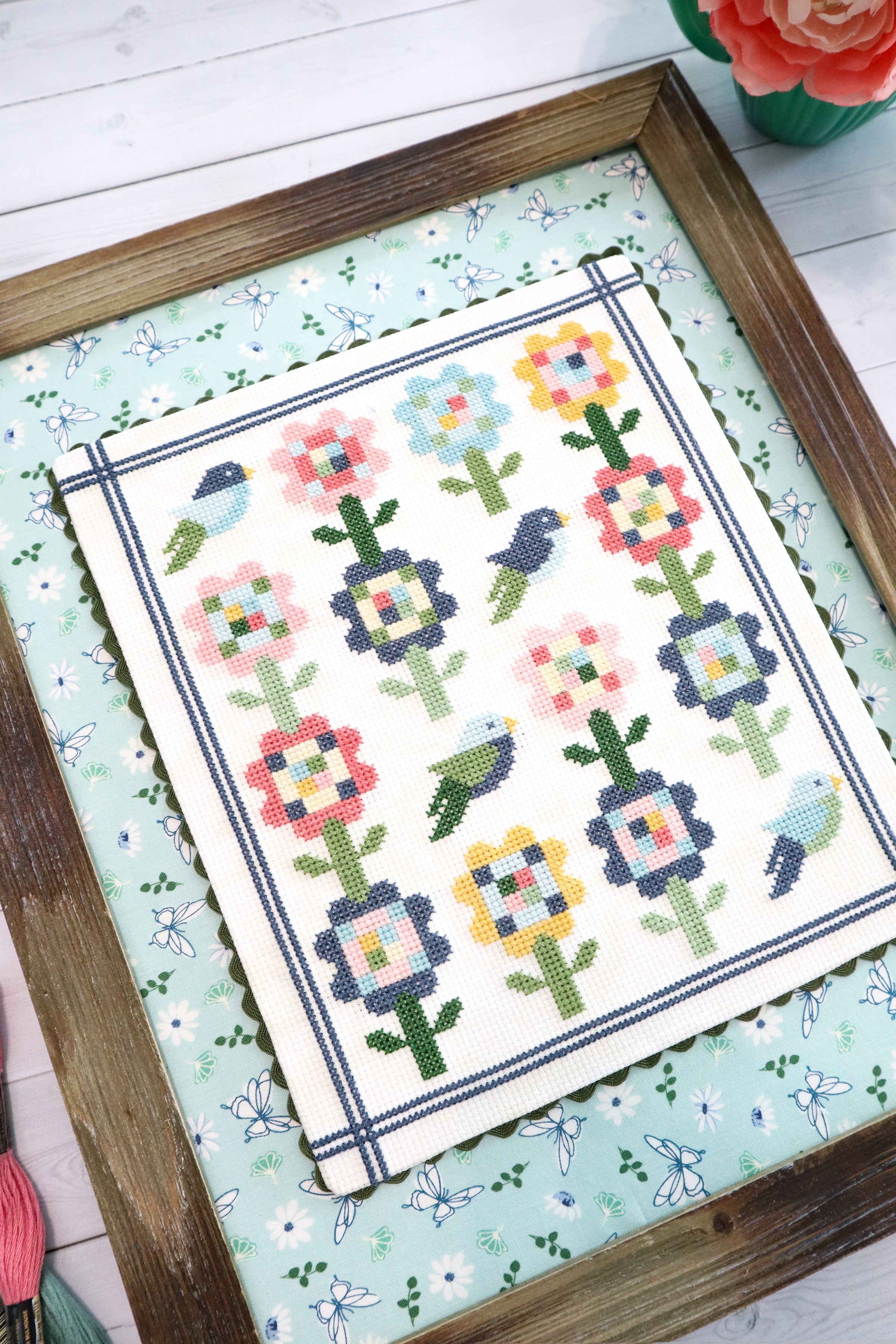 Decorated with flowers and birds, this Songsparrow Cross Stitch is a beautiful addition to any home! The flowers and birds are so bright and perfect for Spring, or any time of year.