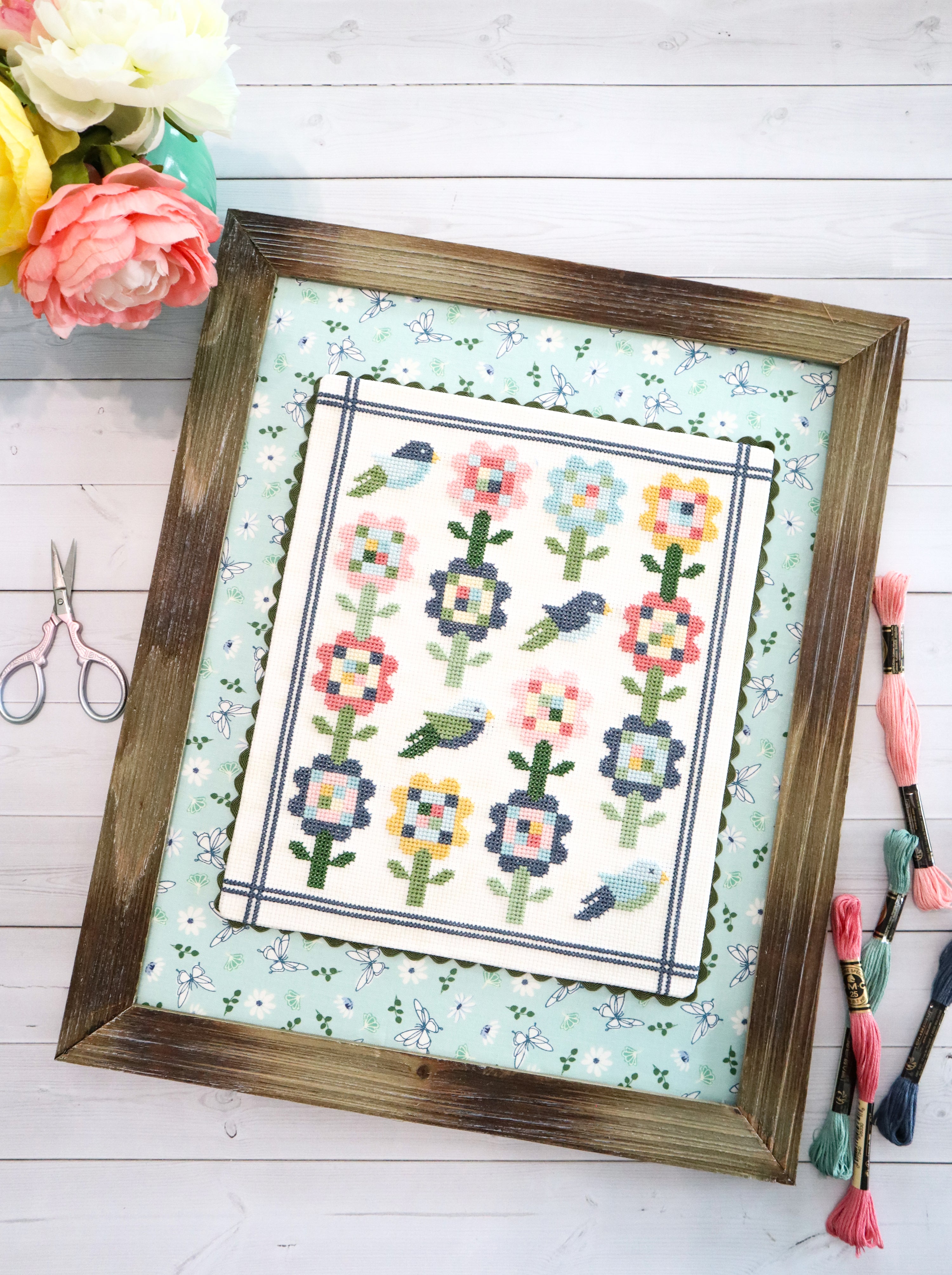 This cross stitch design has a matching quilt pattern and coordinating Songsparrow needle minder!