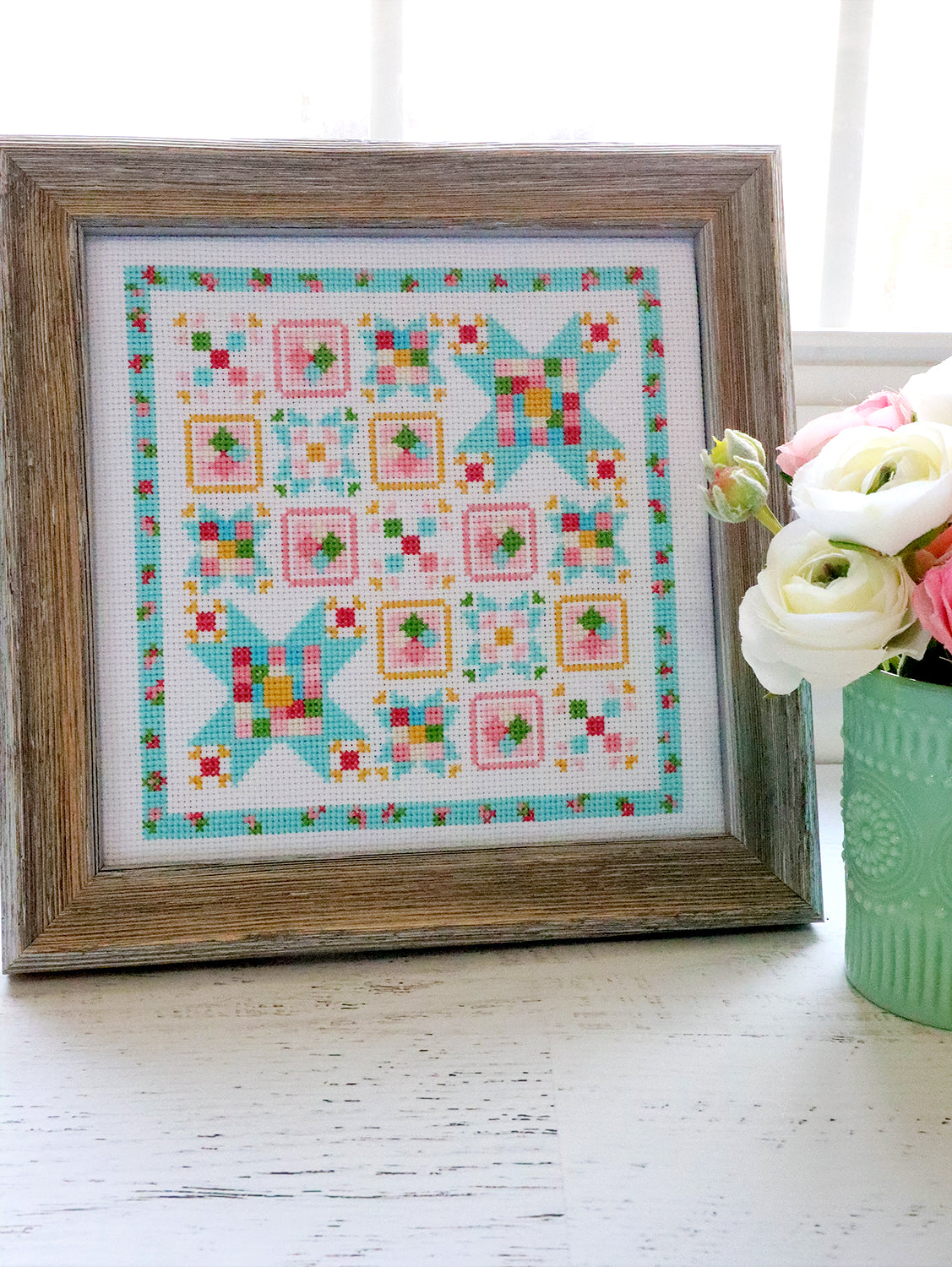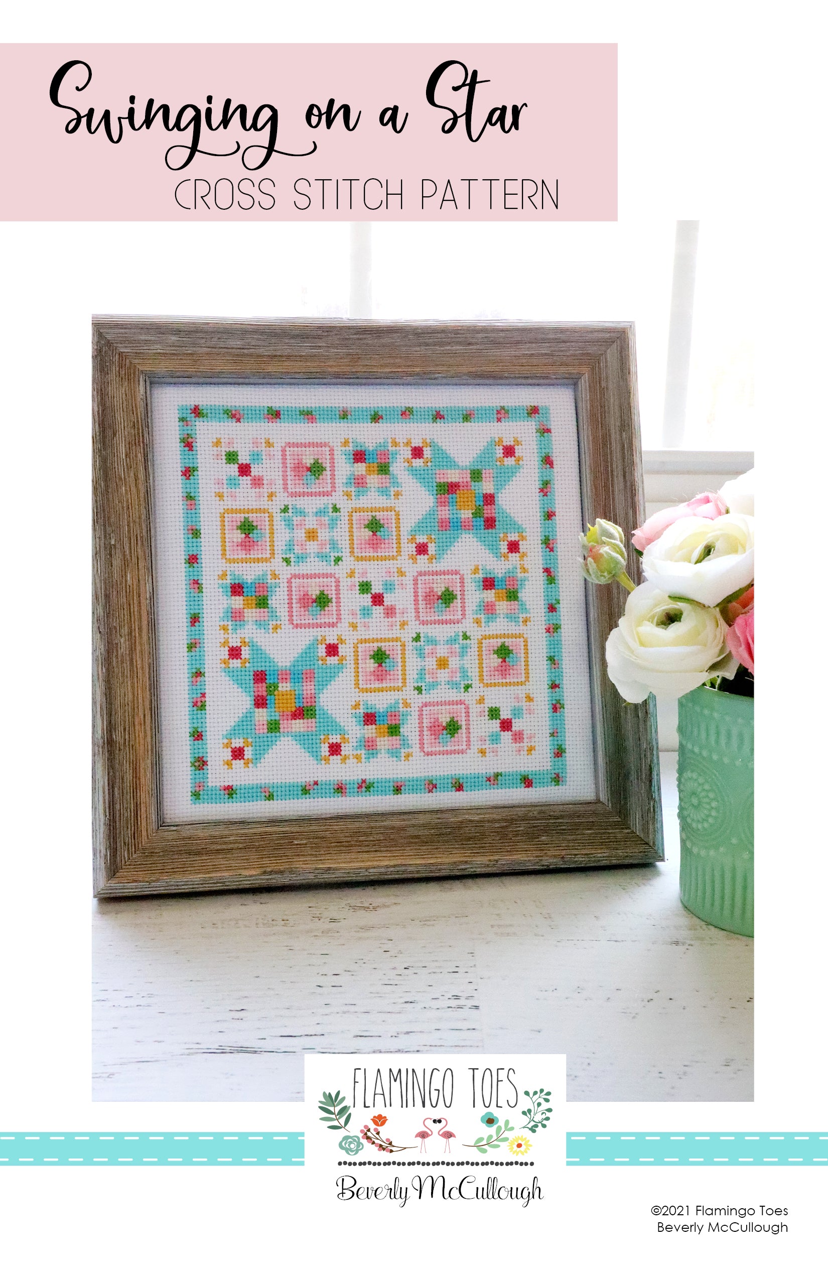 If you love the Swinging on a Star quilt pattern, you will adore this coordinating cross stitch pattern! It's such a fun sampler-style pattern, even if you aren't a quilter! There are several sweet star designs and quilt blocks scattered throughout the design. It makes for a fast and fun project to stitch up!
