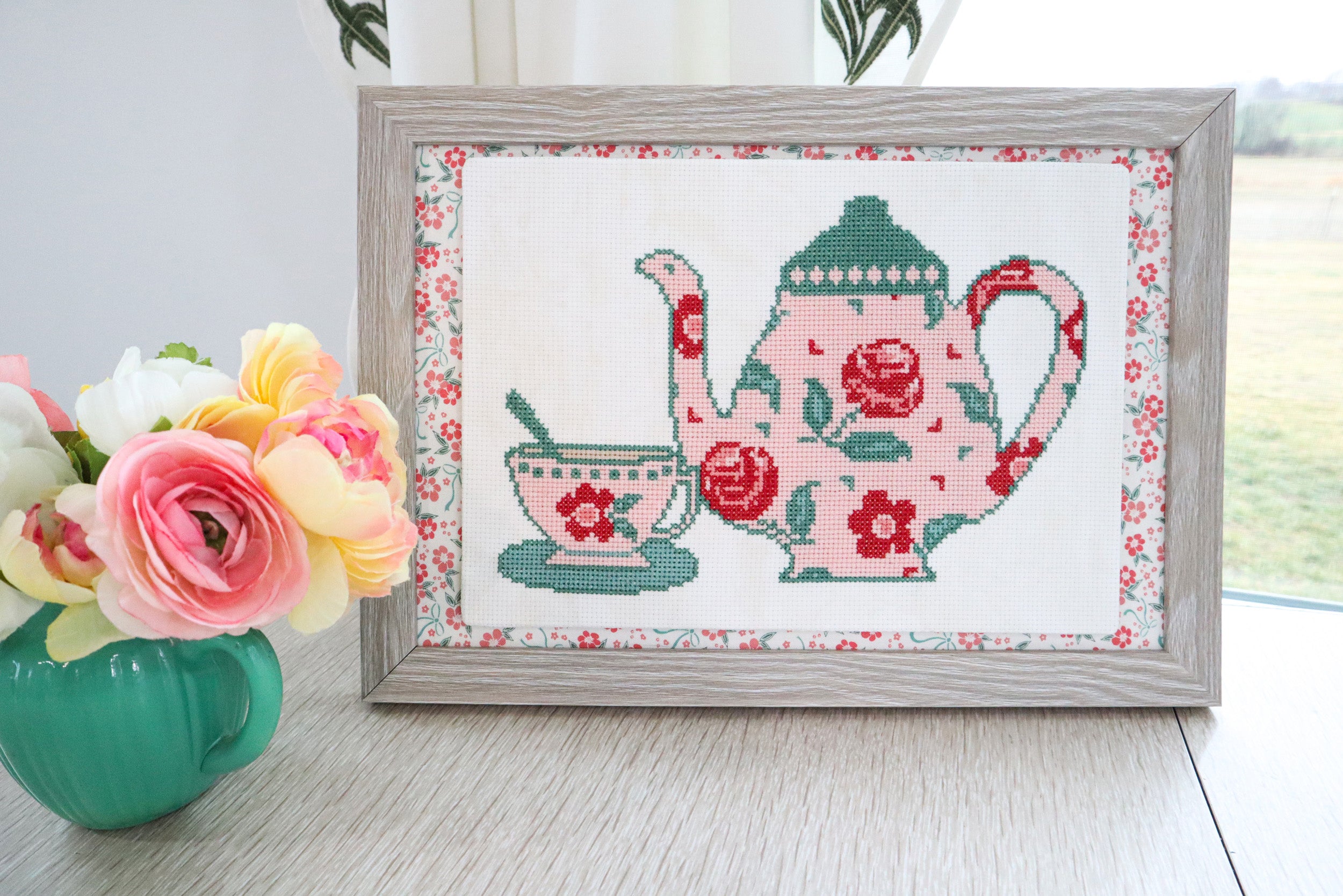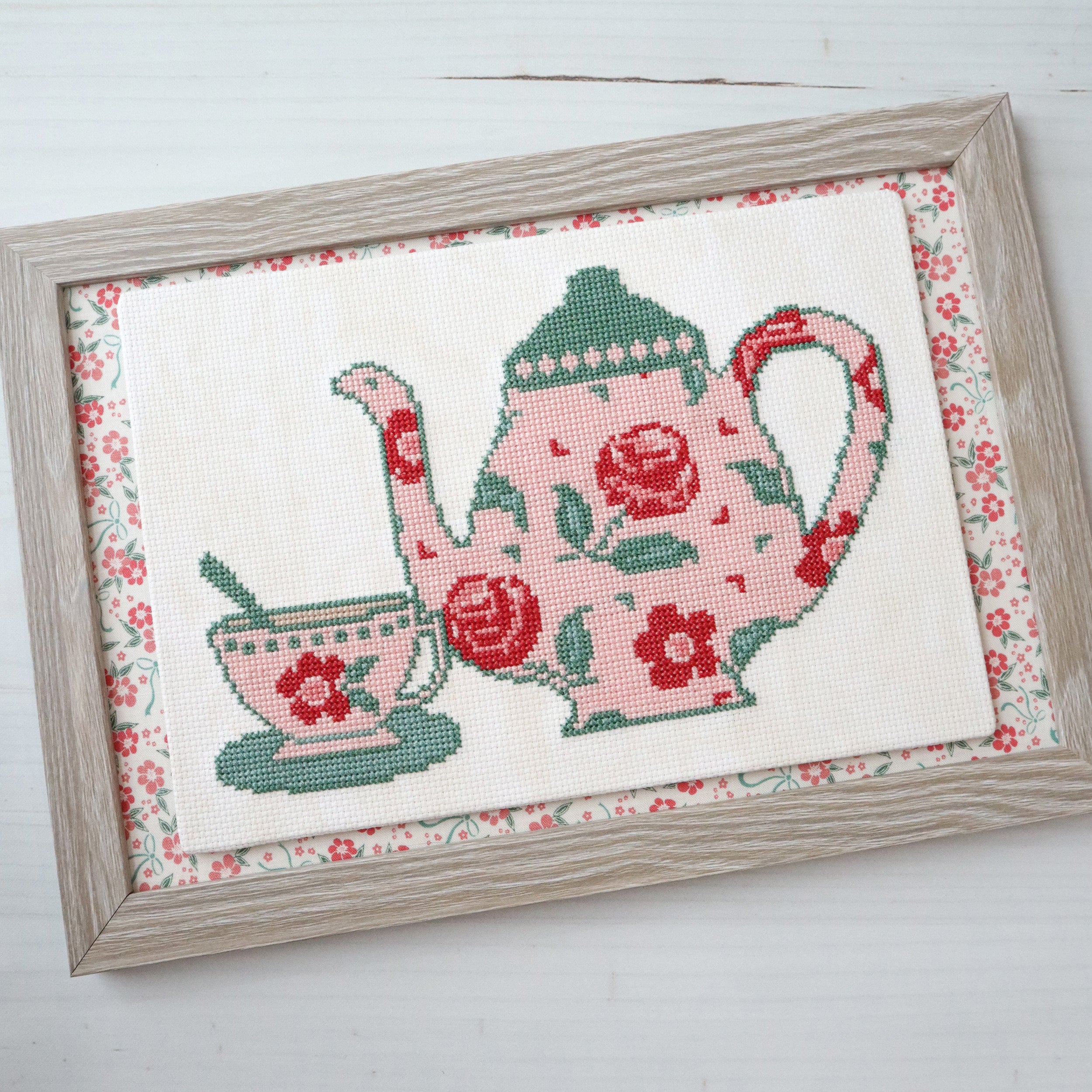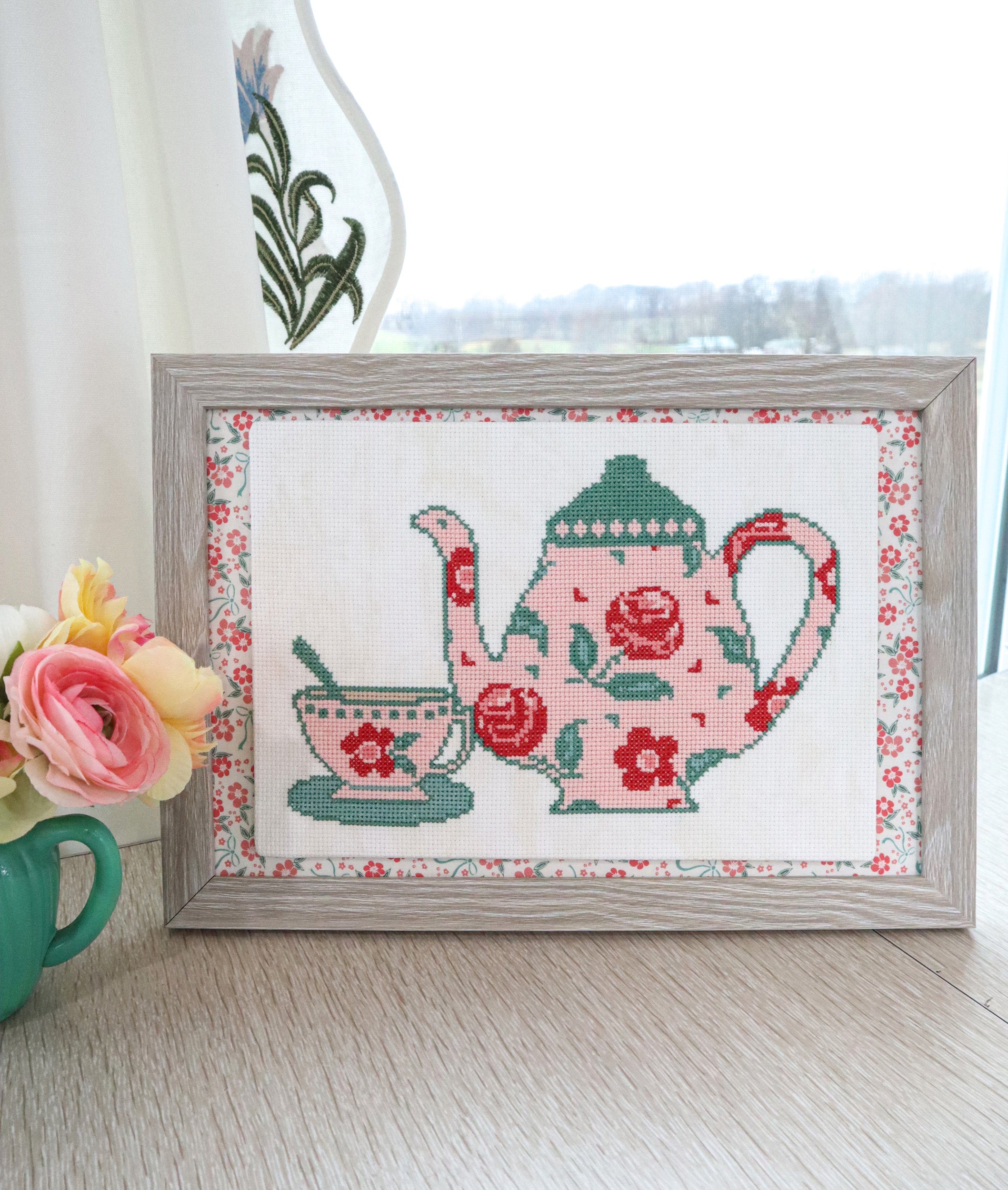 Framed in an 8” x 12” frame with fabric from the Afternoon Tea Fabric collection as a