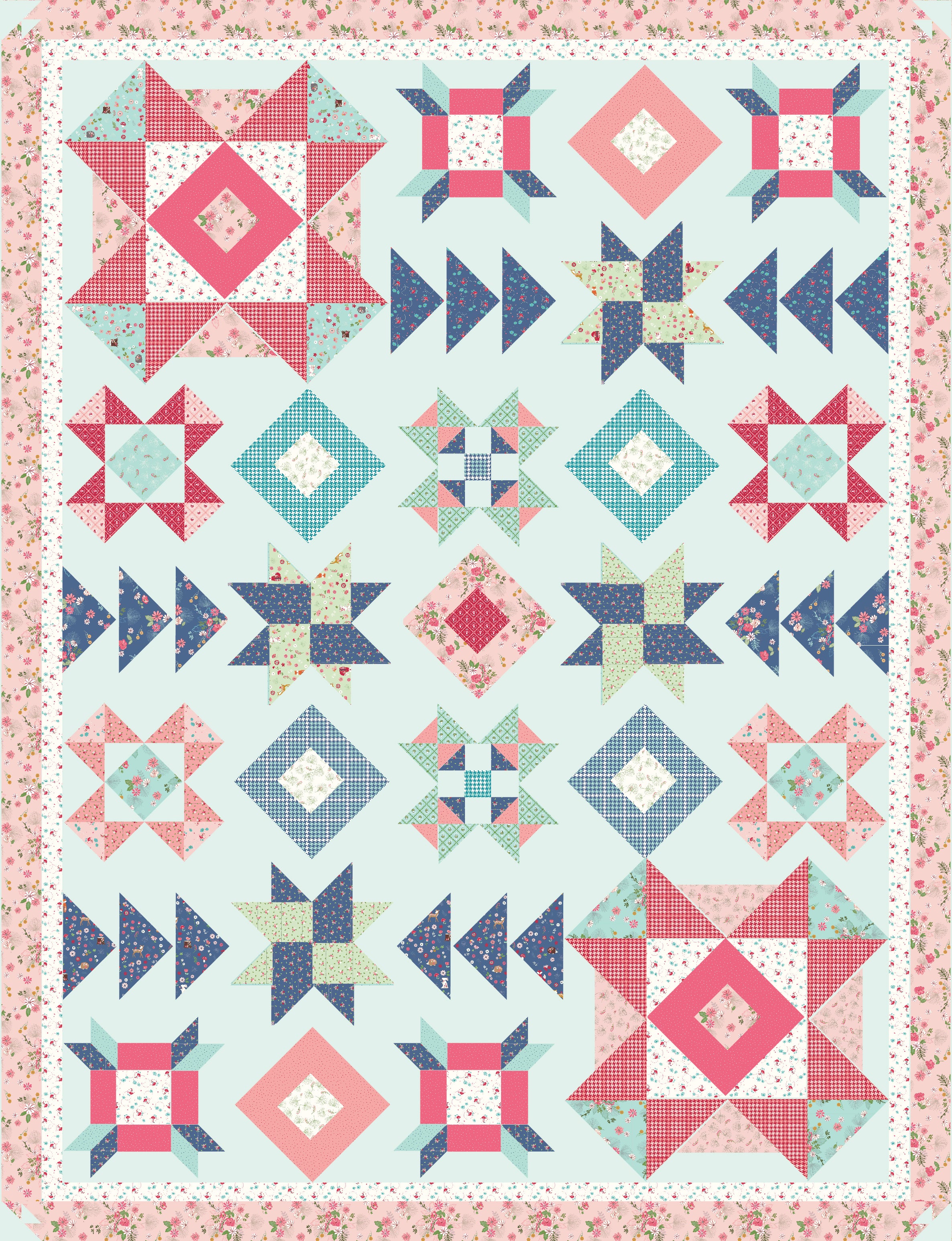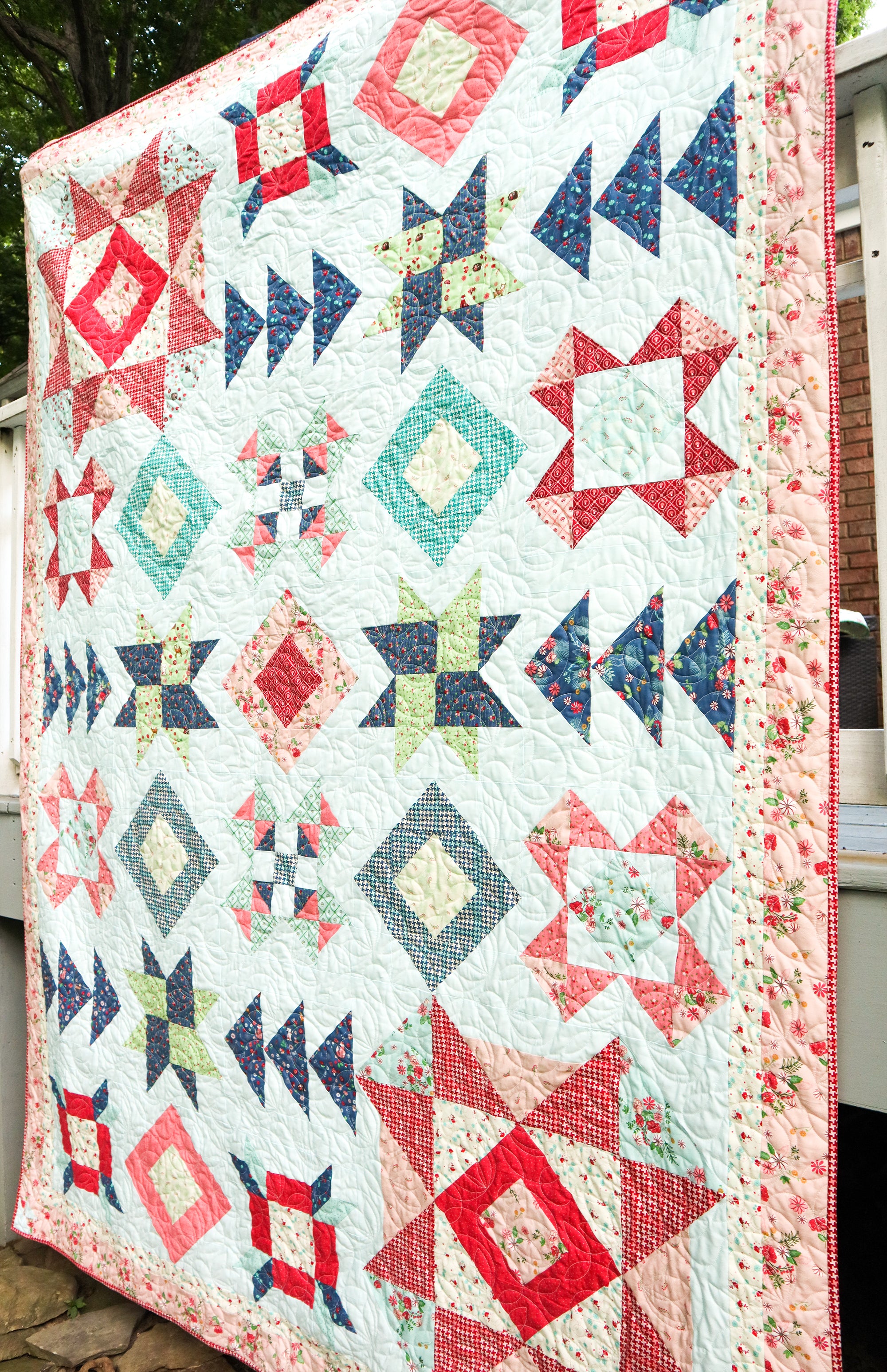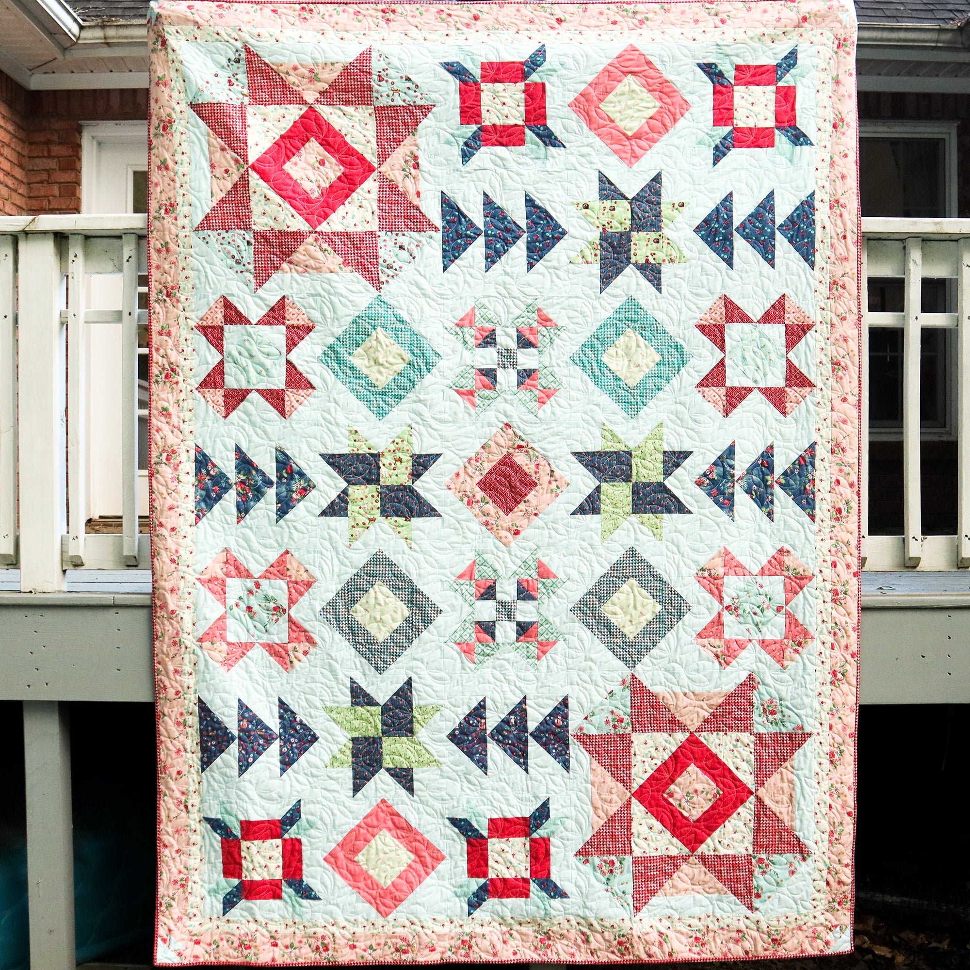 The Wildflower Fields quilt is a pretty combination of blocks that is so fun to sew up! There are seven different block styles so this quilt would be great as a block of the month or sew along project!