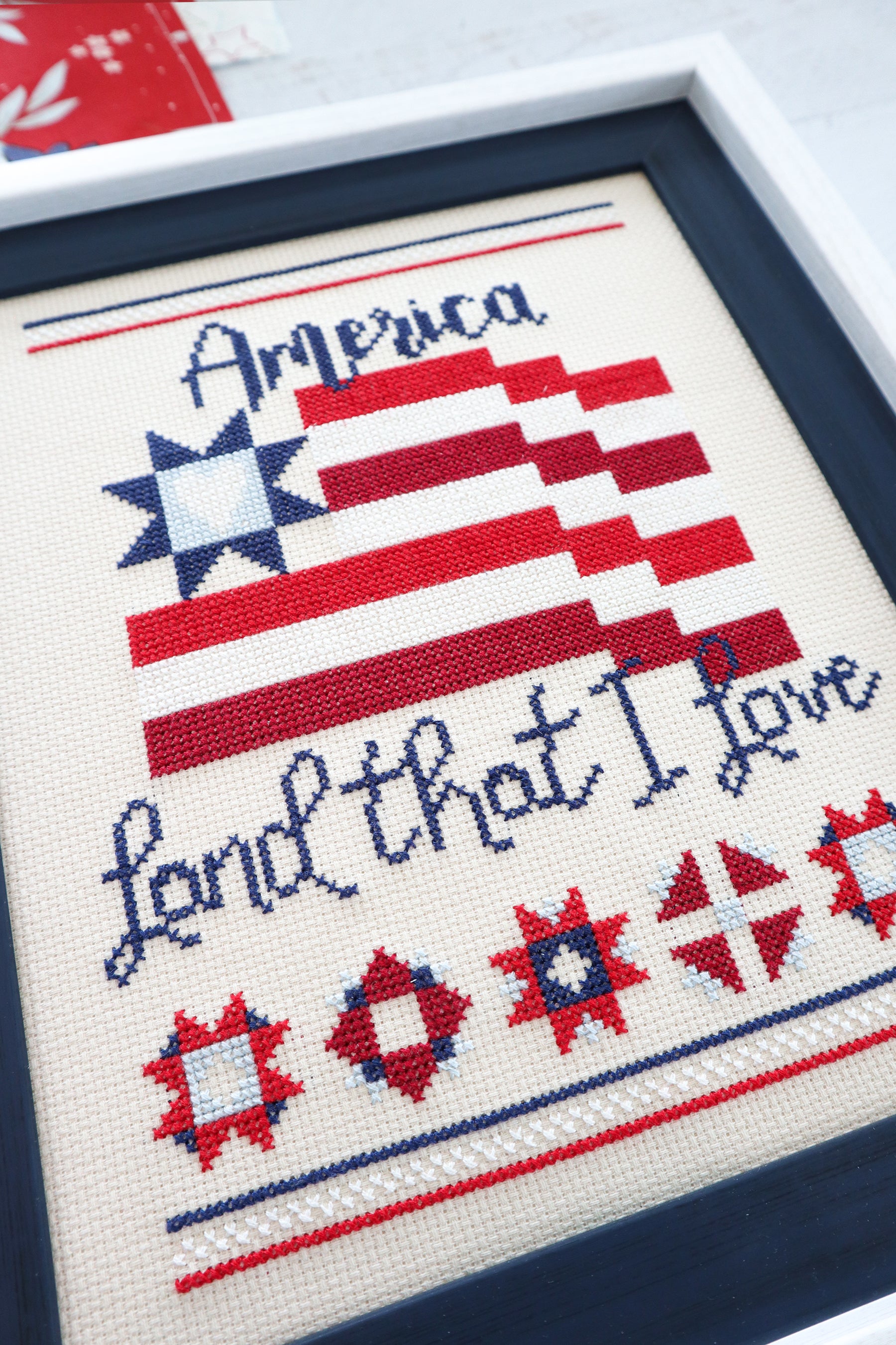 America Land That I Love Flag Cross Stitch PDF Pattern