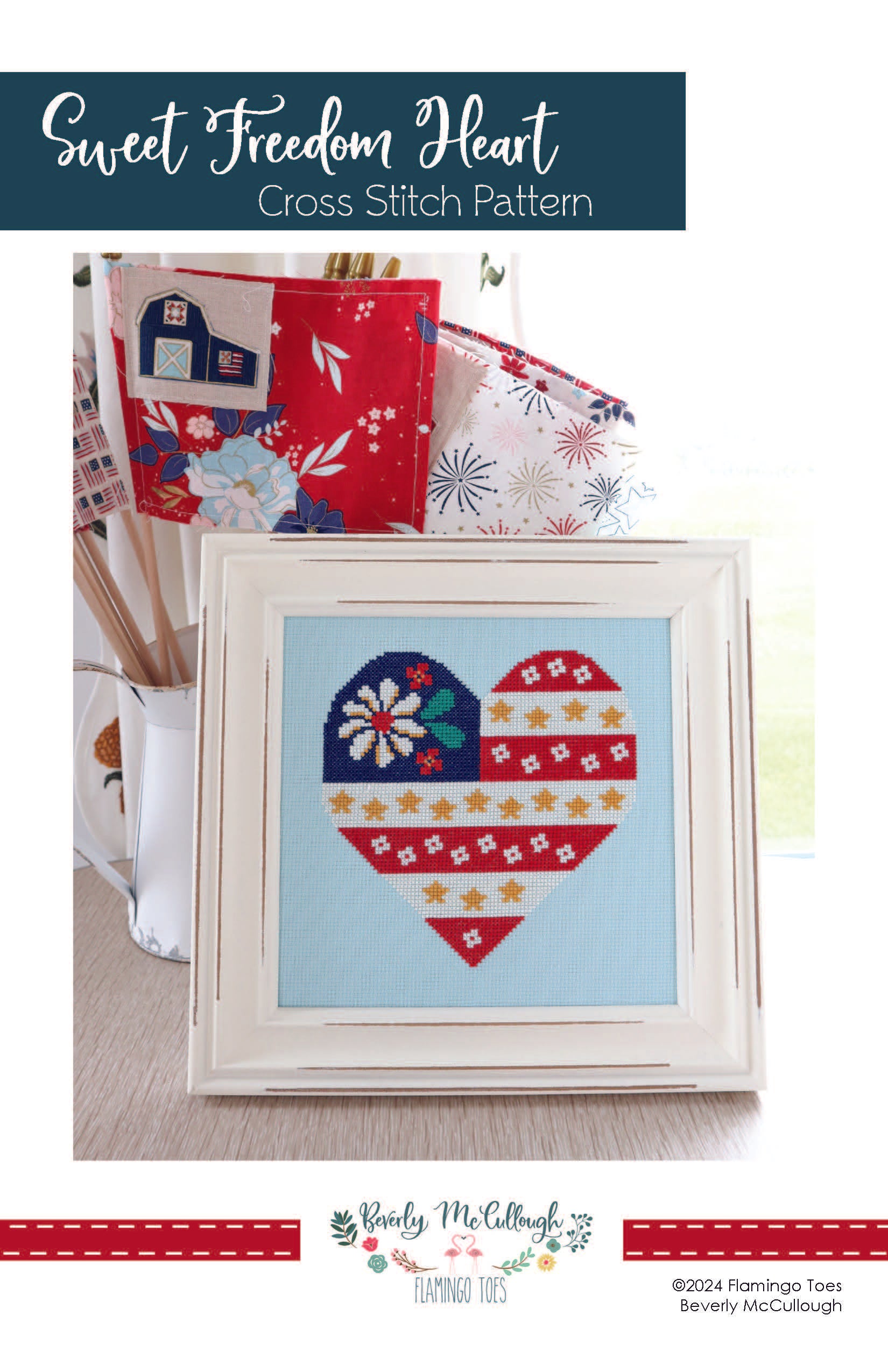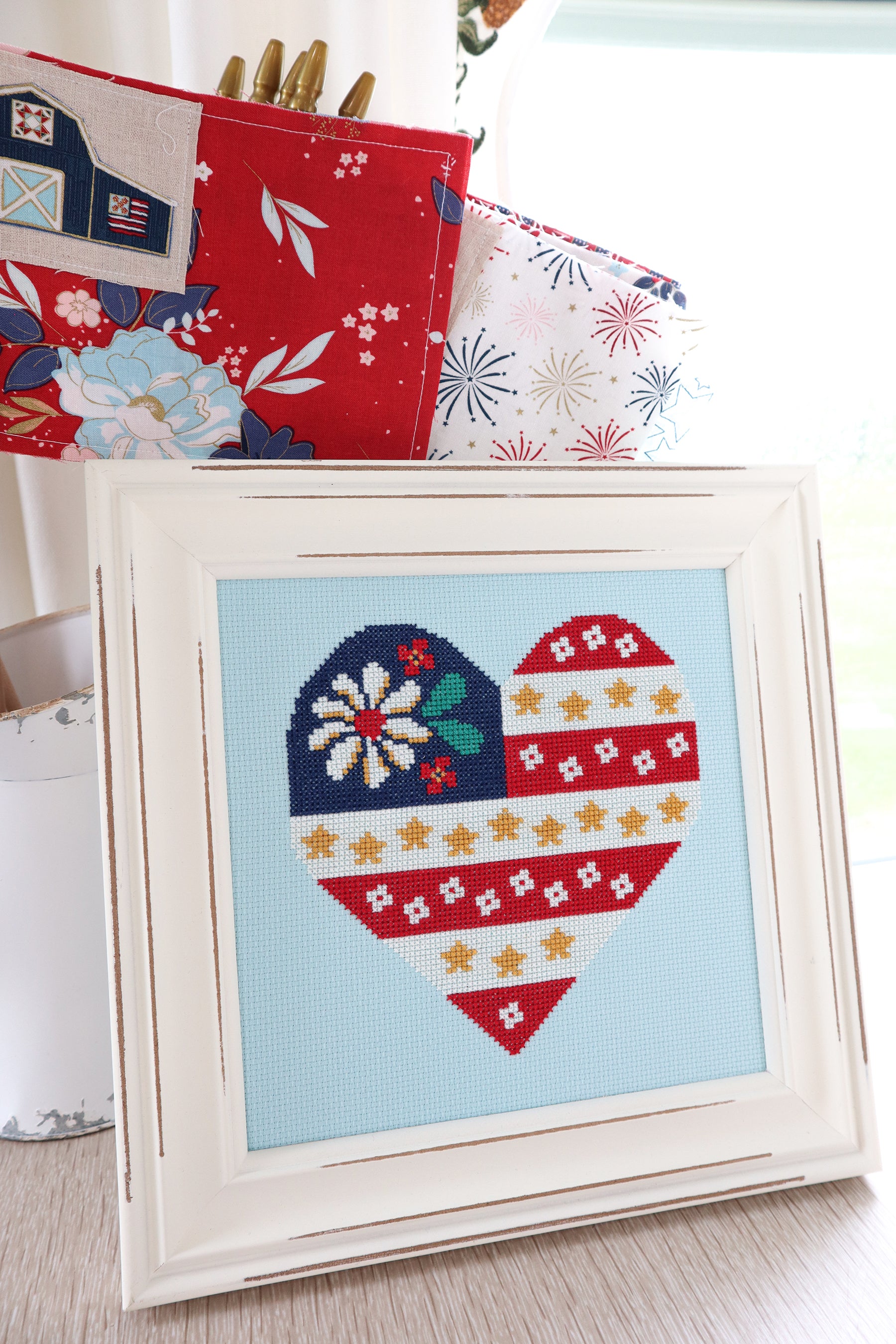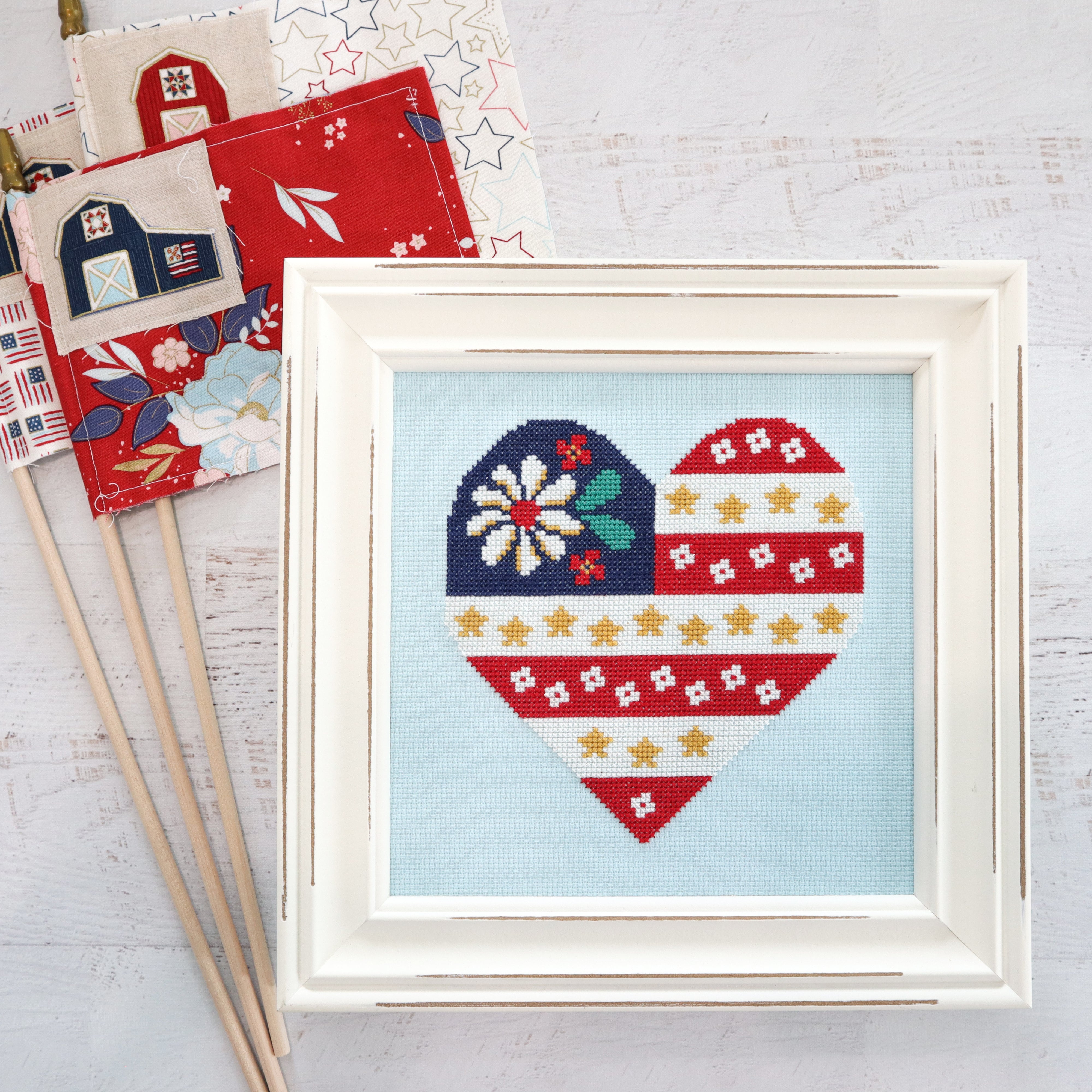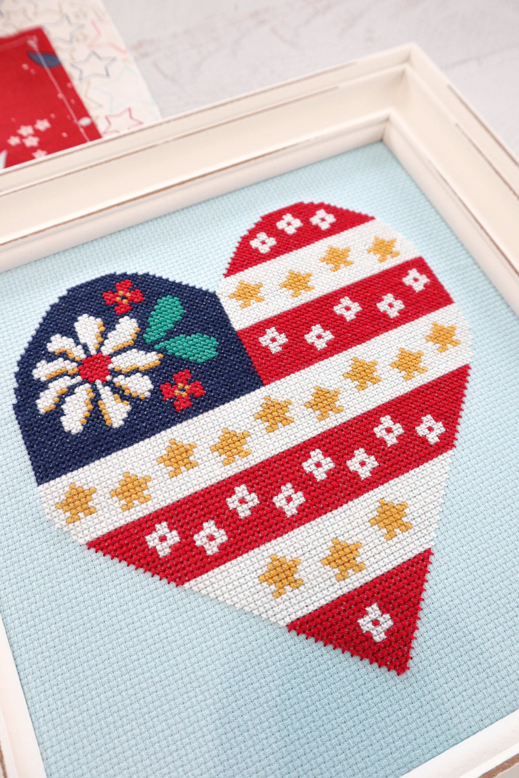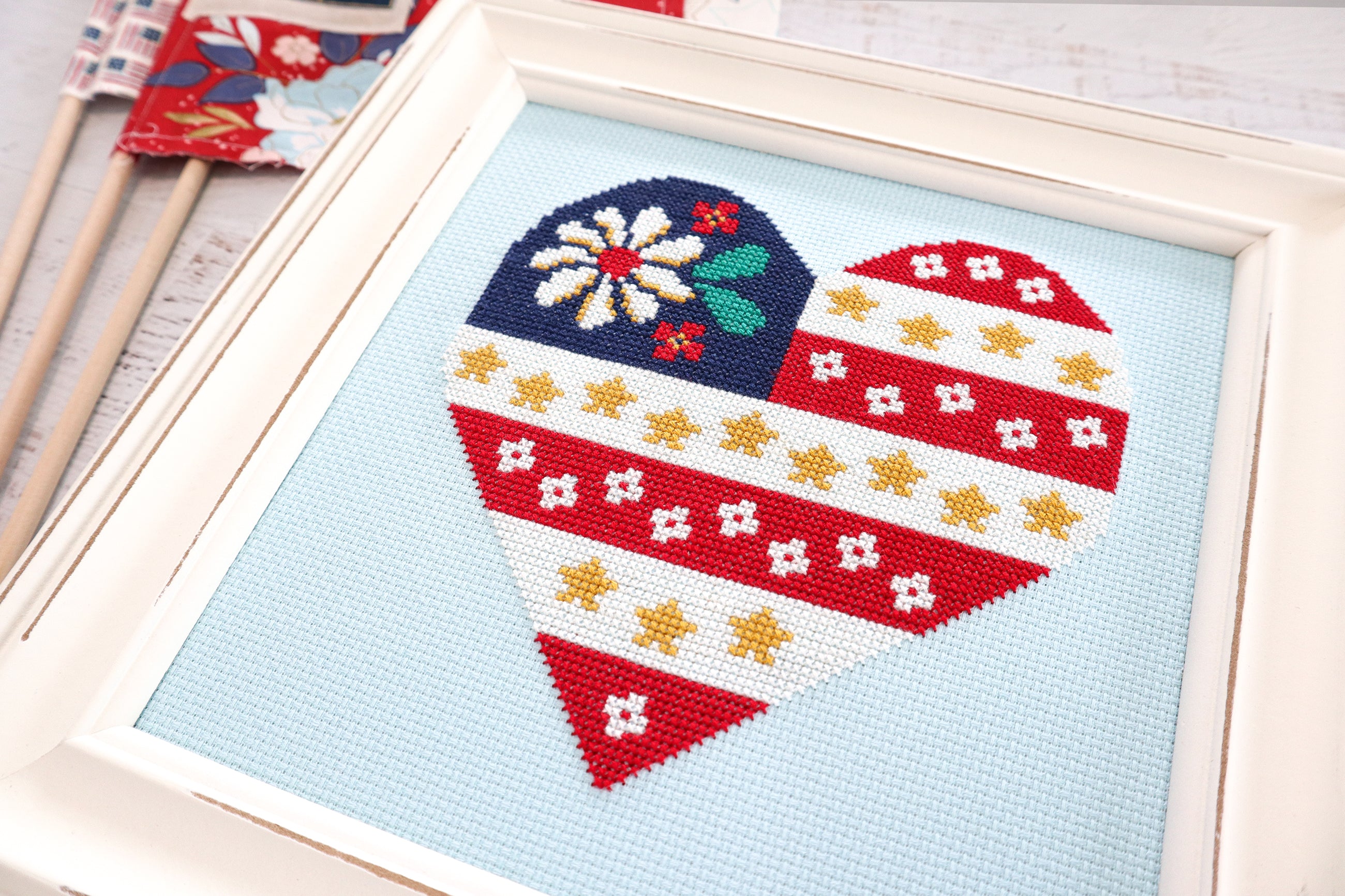 Sweet Freedom Heart Flag Cross Stitch PDF Pattern
