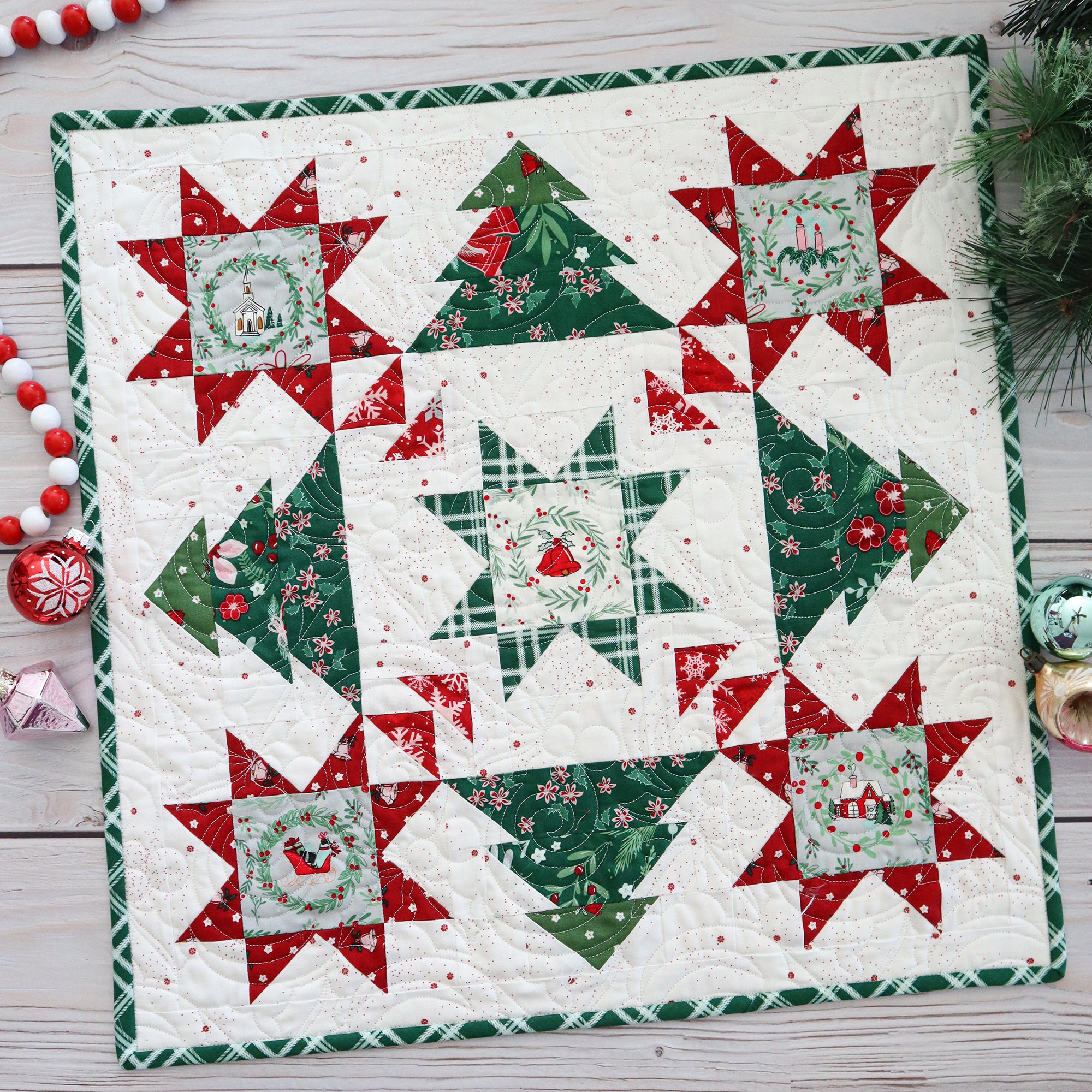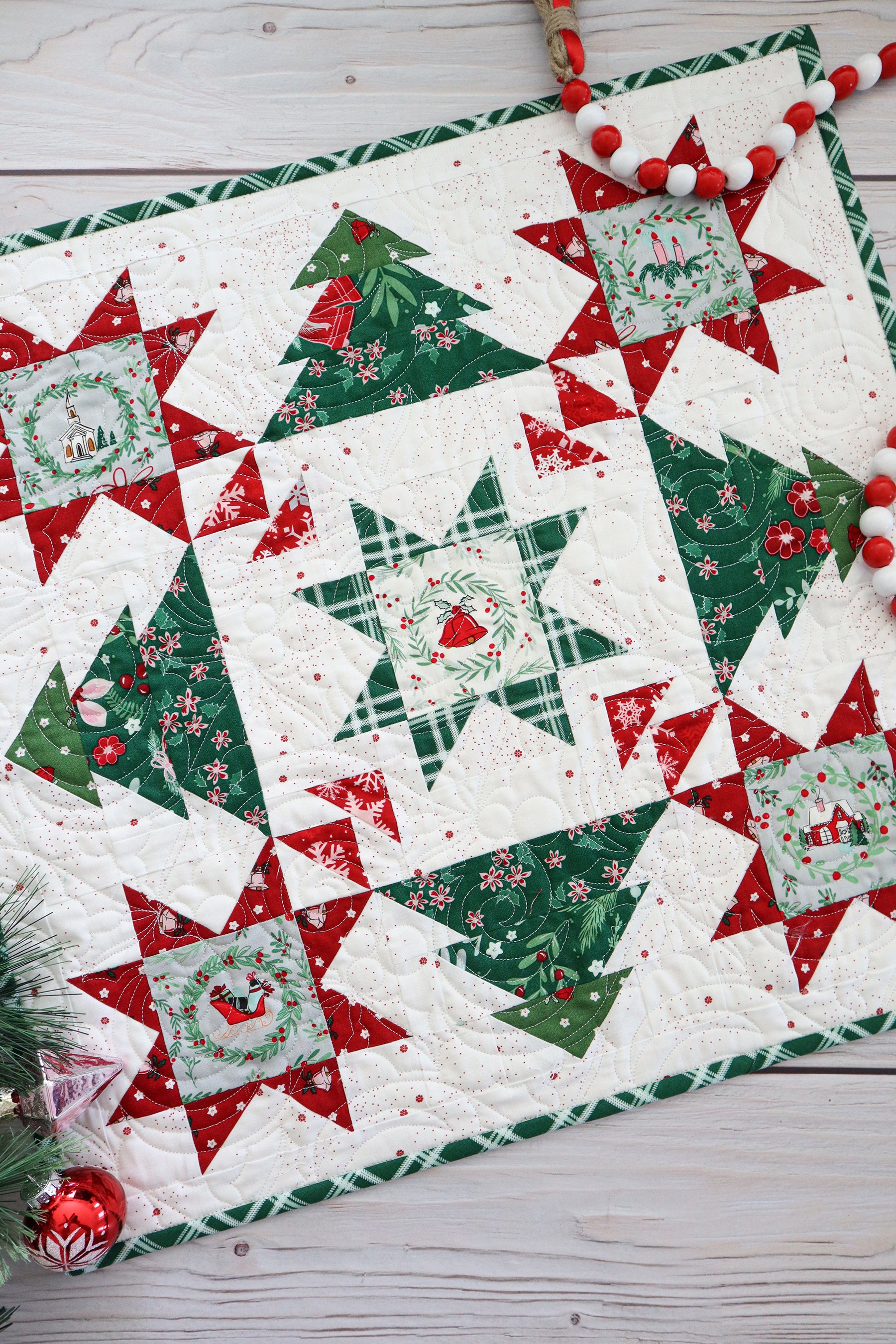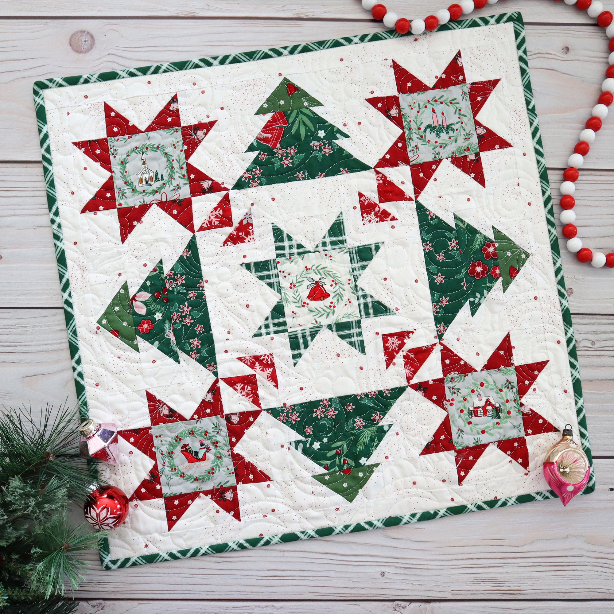 Beginner-friendly and full of whimsical holiday spirit, this mini quilt is a delightful way to add handmade cheer to your home or send a handmade gift to someone special.