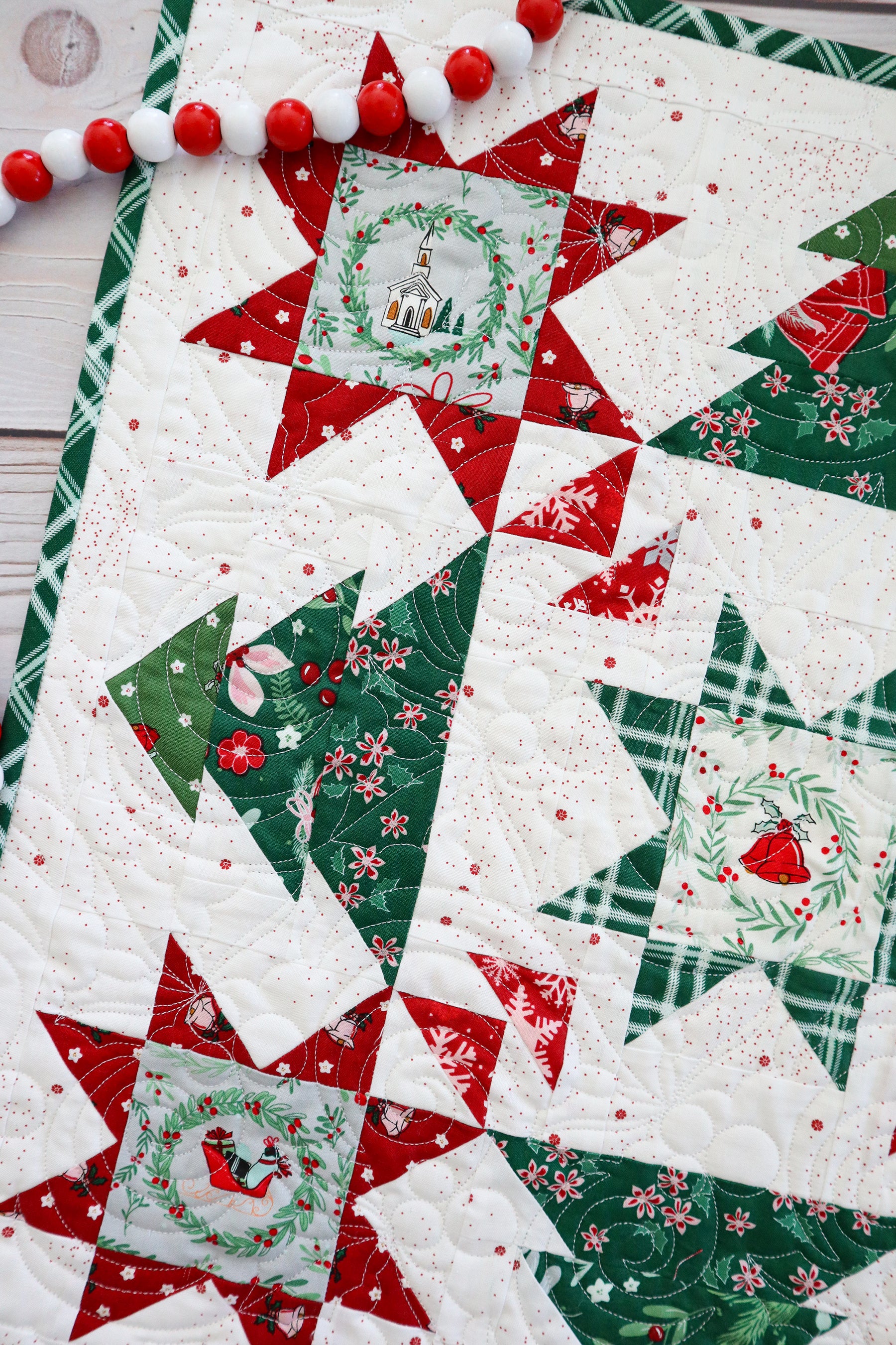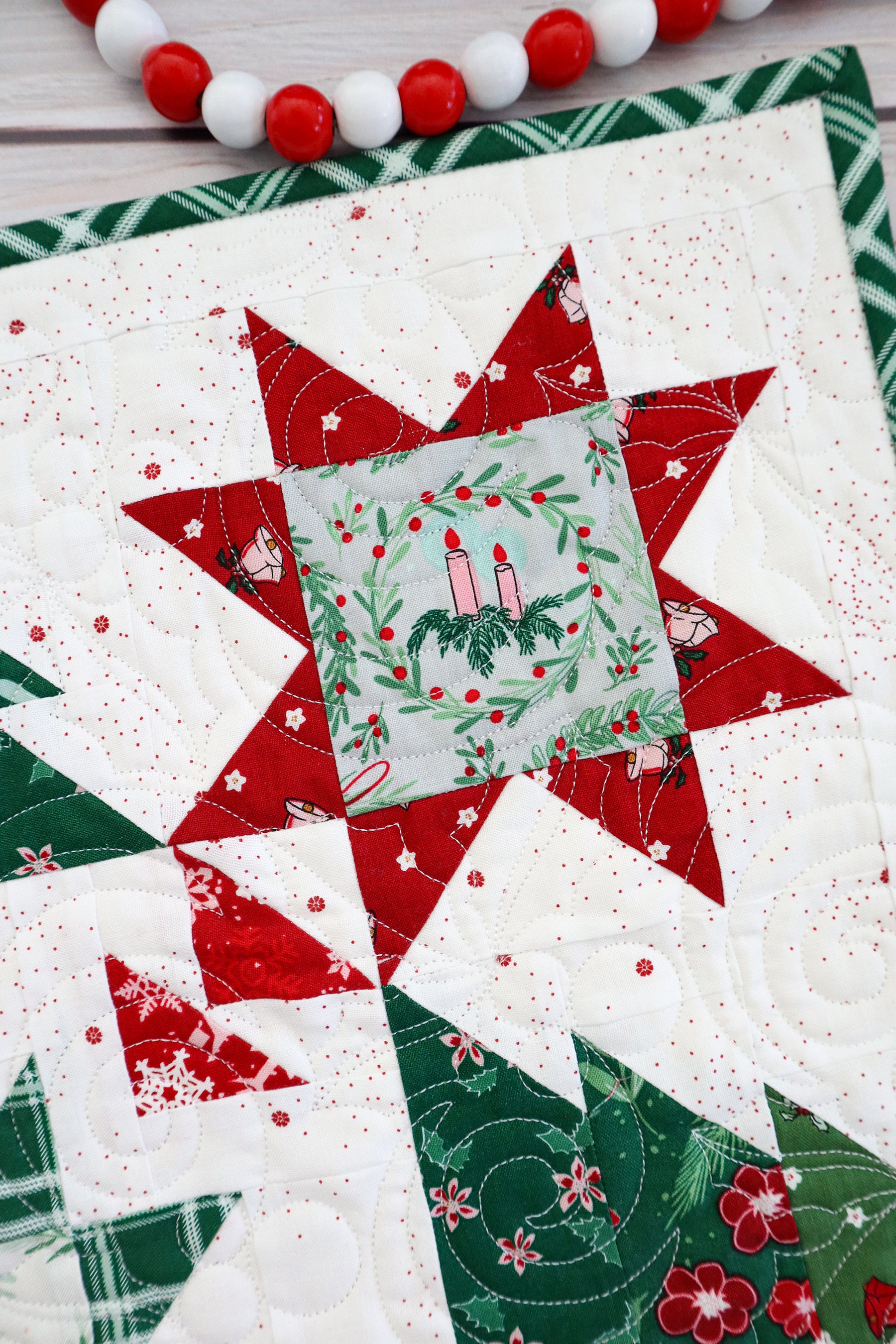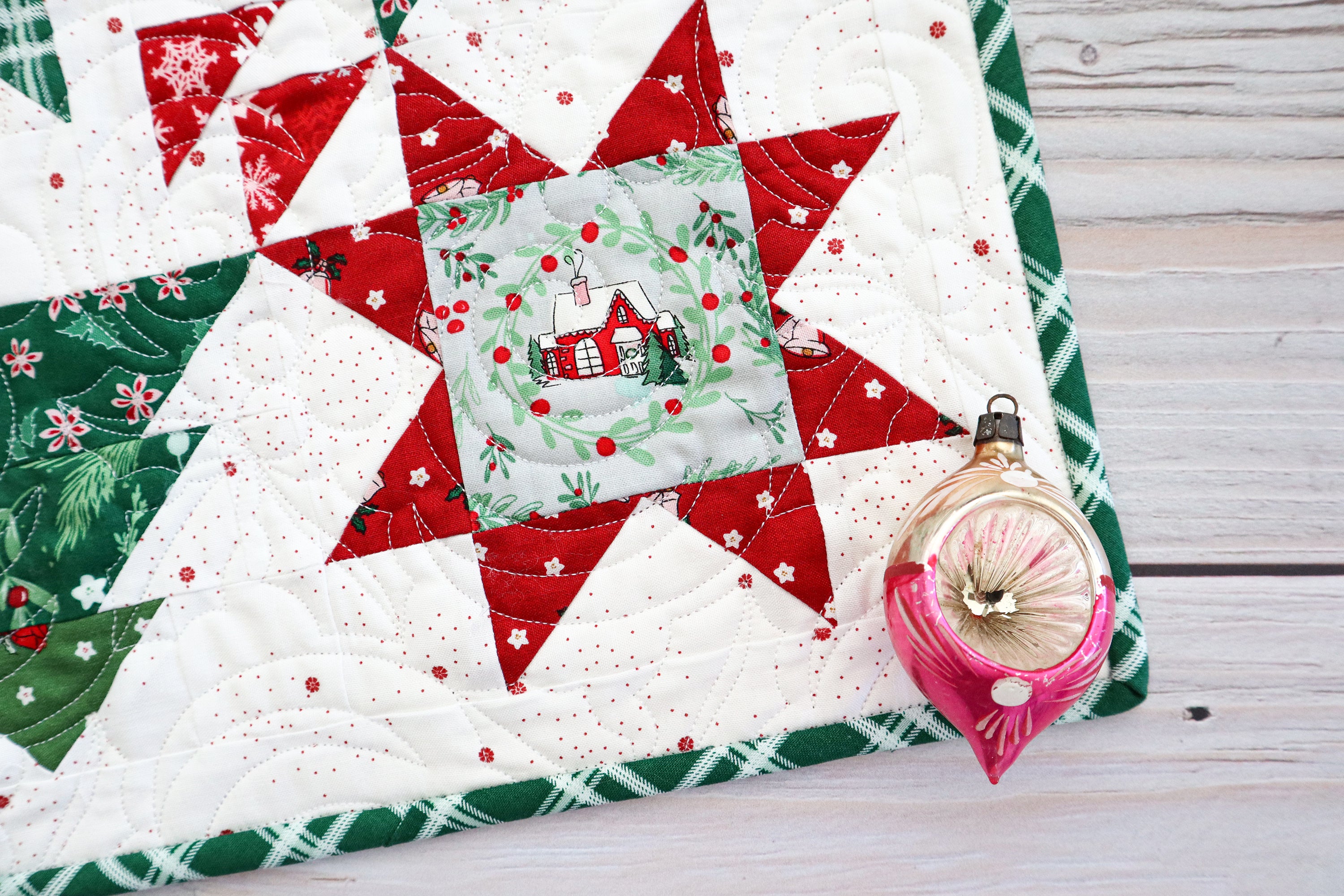 Beginner-friendly and full of whimsical holiday spirit, this mini quilt is a delightful way to add handmade cheer to your home or send a handmade gift to someone special.
