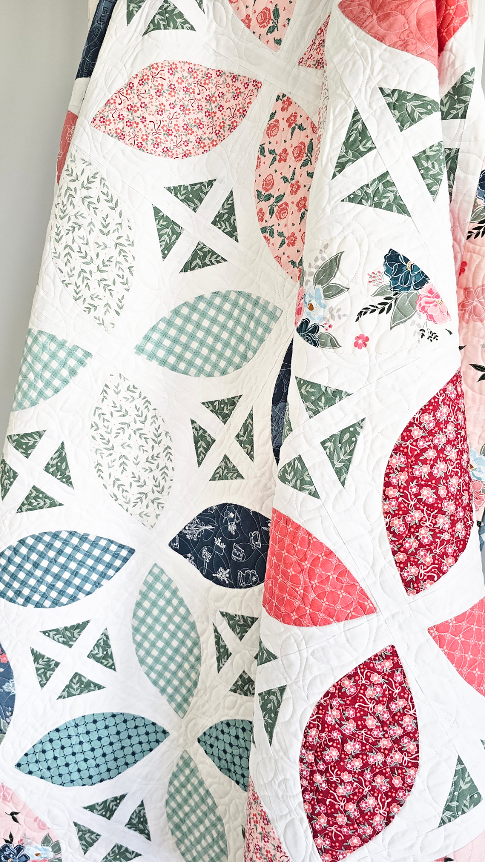 Create a vintage orange peel-inspired quilt with this fun pattern! This Orange Pekoe quilt is easy to sew and a perfect project for beginning applique. This pattern includes a paper template, but it is even easier to make using my Large Orange Peel template from Riley Blake Designs. The quilt is precut-friendly and designed for a 10" stacker.