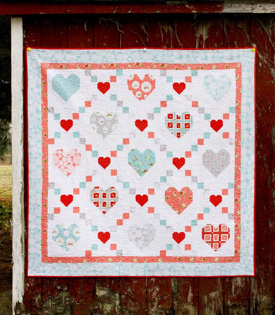 Show someone all the love with this this sweet Hearts and Kisses Quilt! This quilt is so fun for Valentine's Day - or any time of year! It's perfect for beginners or advanced quilters and it's pre-cut friendly!