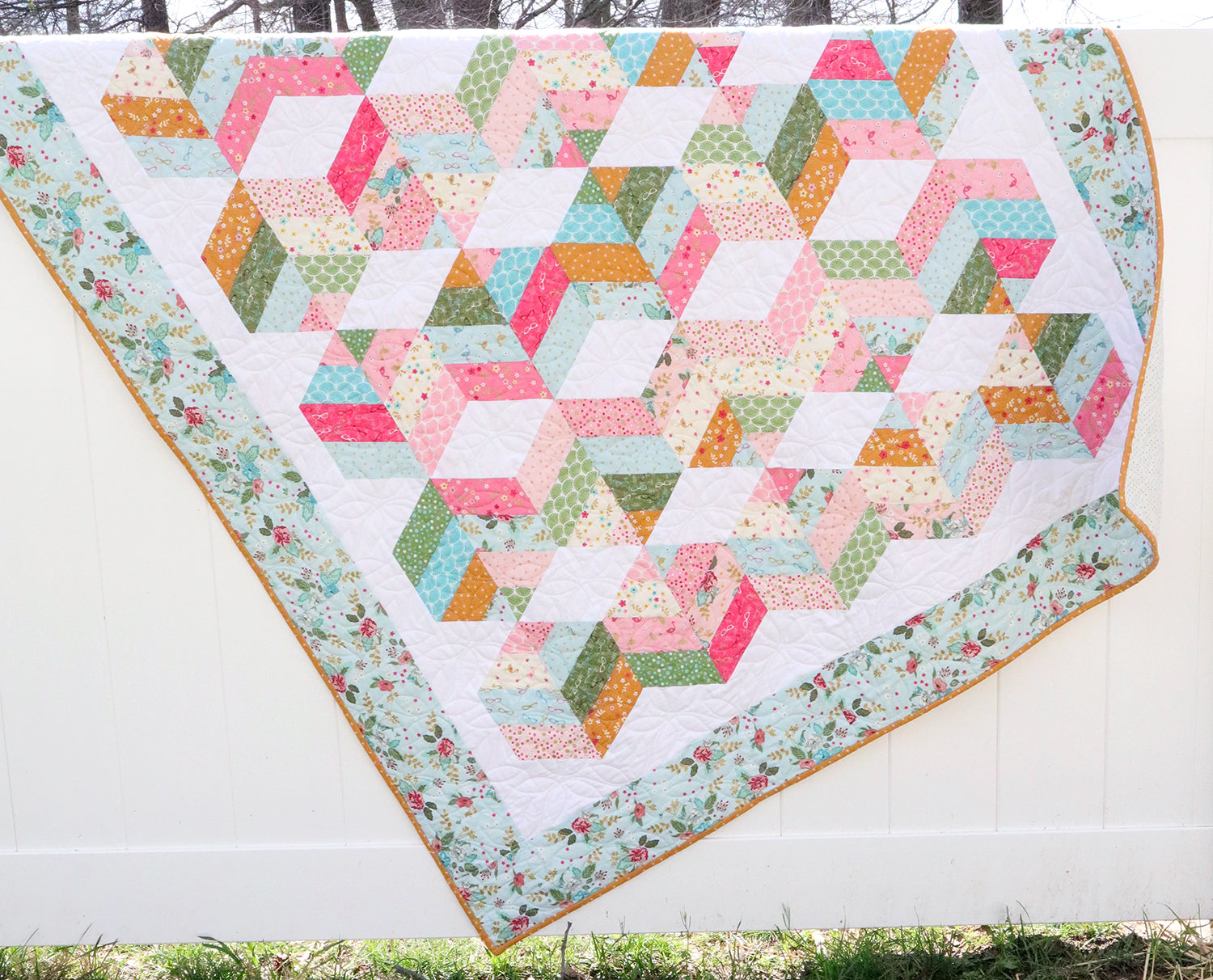 This quilt uses my acrylic templates to make cutting this quilt even simpler. The pattern also comes with paper patterns for easy cutting. You can find the acrylic versions here: https://flamingotoesshop.com/collections/notions/products/half-hexie-and-triangle-template-set