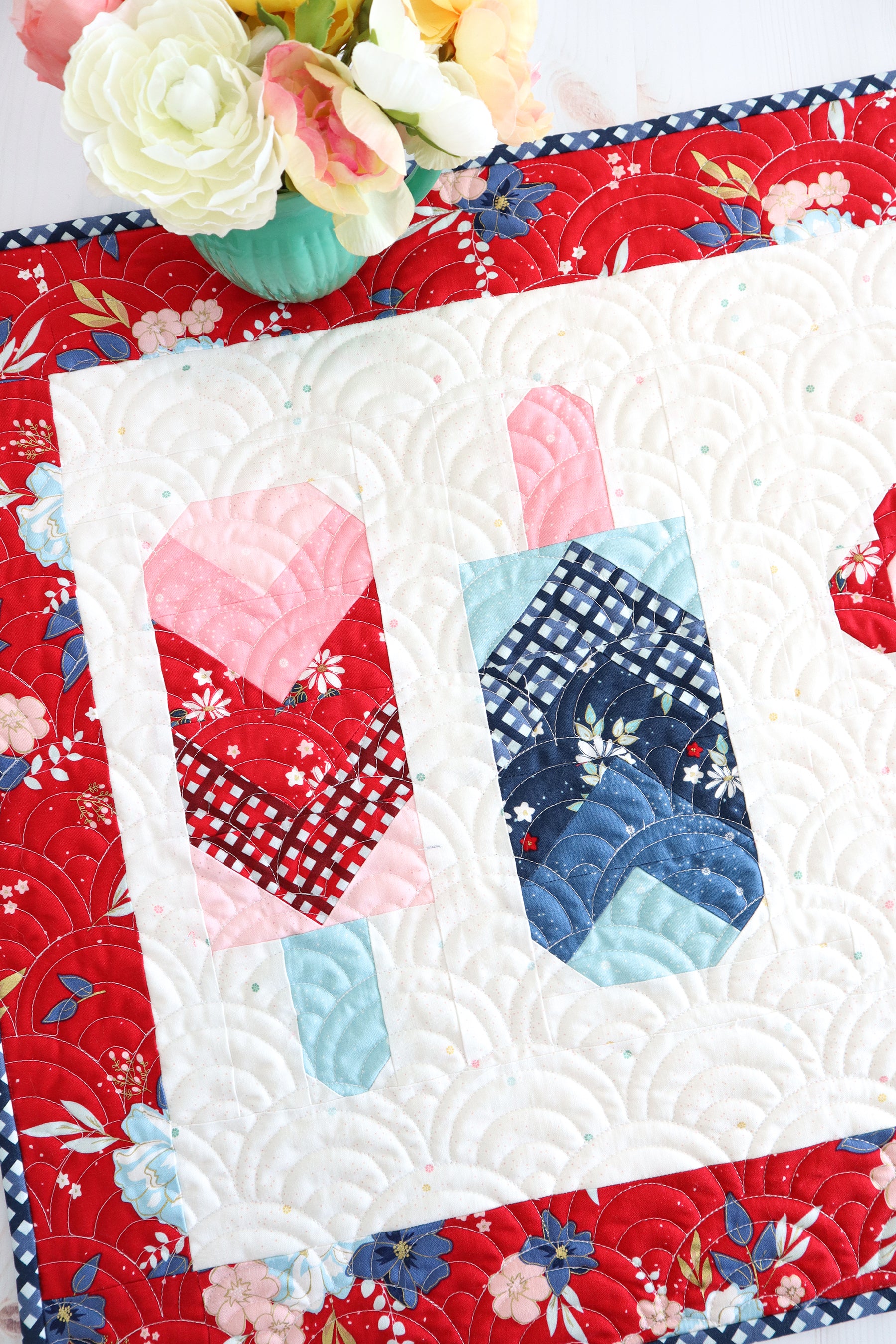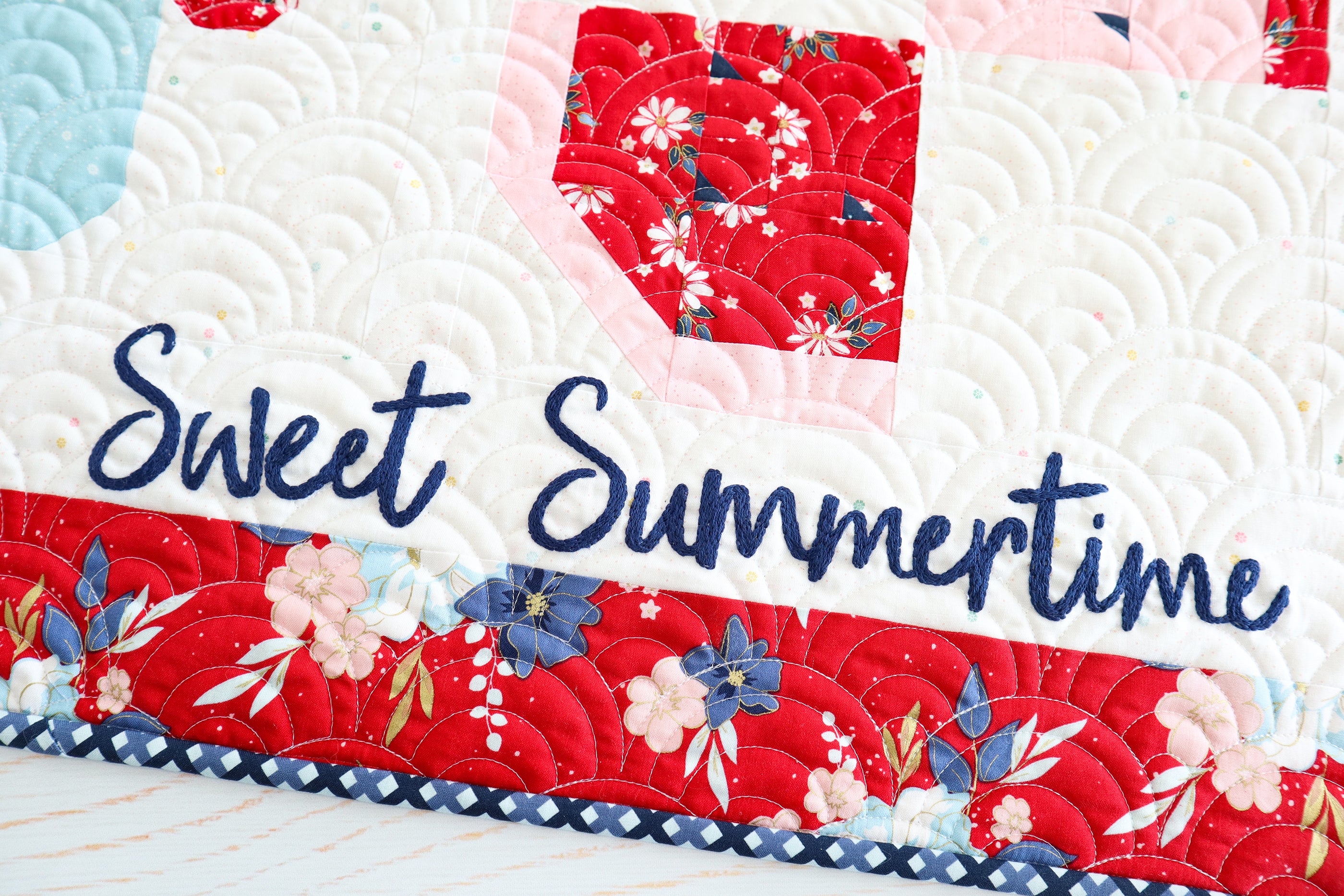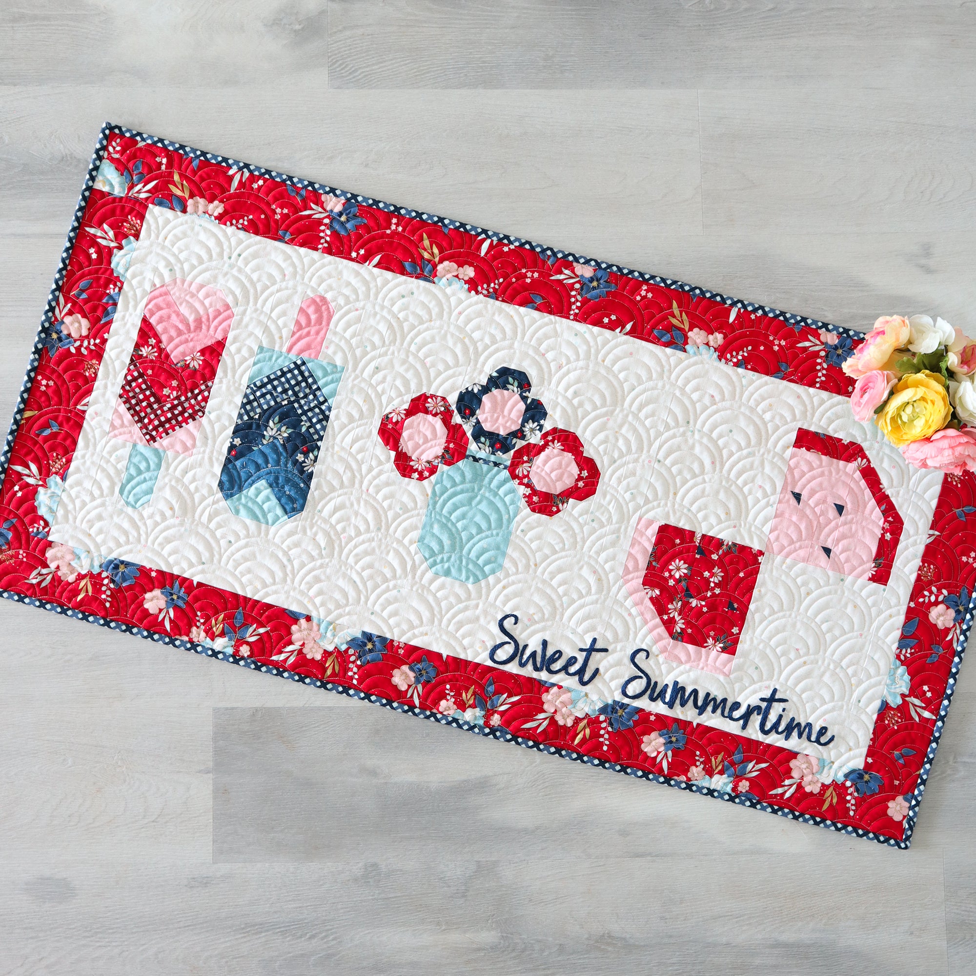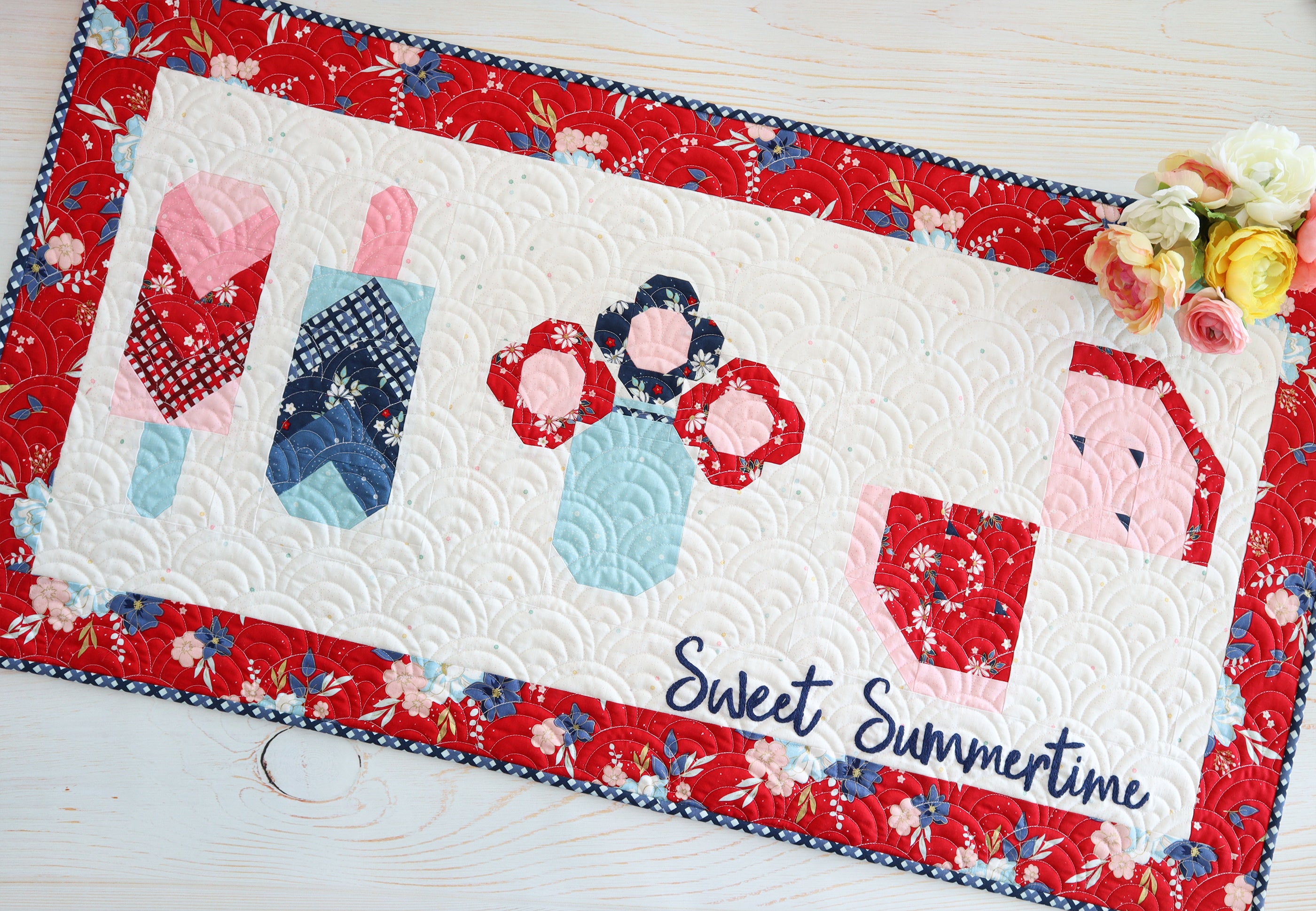 Choose your favorite 12" blocks and sew up this great Sweet Summertime Runner Pattern. A little bit of embroidery adds even more fun to the runner.