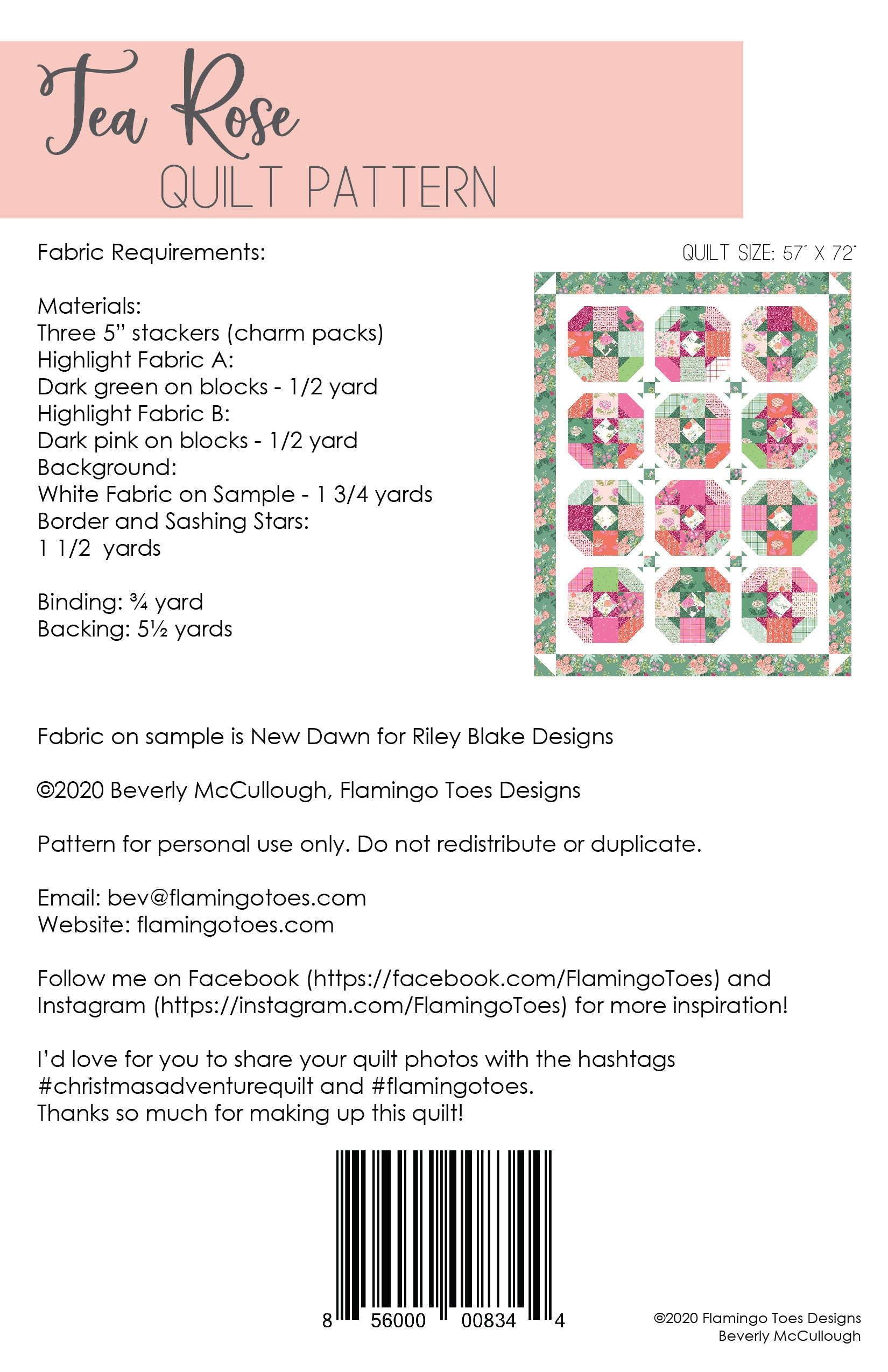 The Tea Rose Quilt pattern is perfect for all those 5" stackers (charm packs) that we just can't resist buying! It is a fun and fast quilt to sew up and it's a great pattern for showing off your favorite fabric collections.