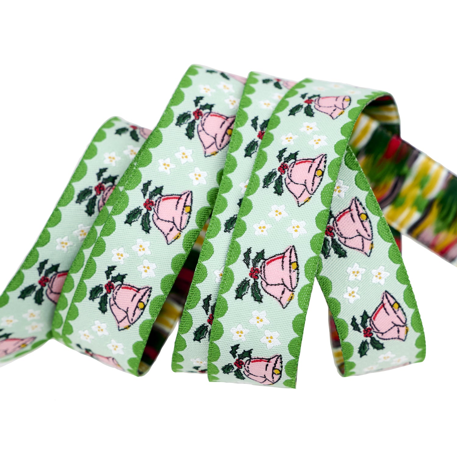This Vintage Bells ribbon from my Mistletoe and Holly collection might be my favorite of the bunch! It features soft pink bells and sweet florals on a festive green scalloped background—such a fun mix of retro and fresh. At 7/8" wide, it’s a lovely choice for adding vintage charm to your holiday gift wrapping, décor, or sewing projects.