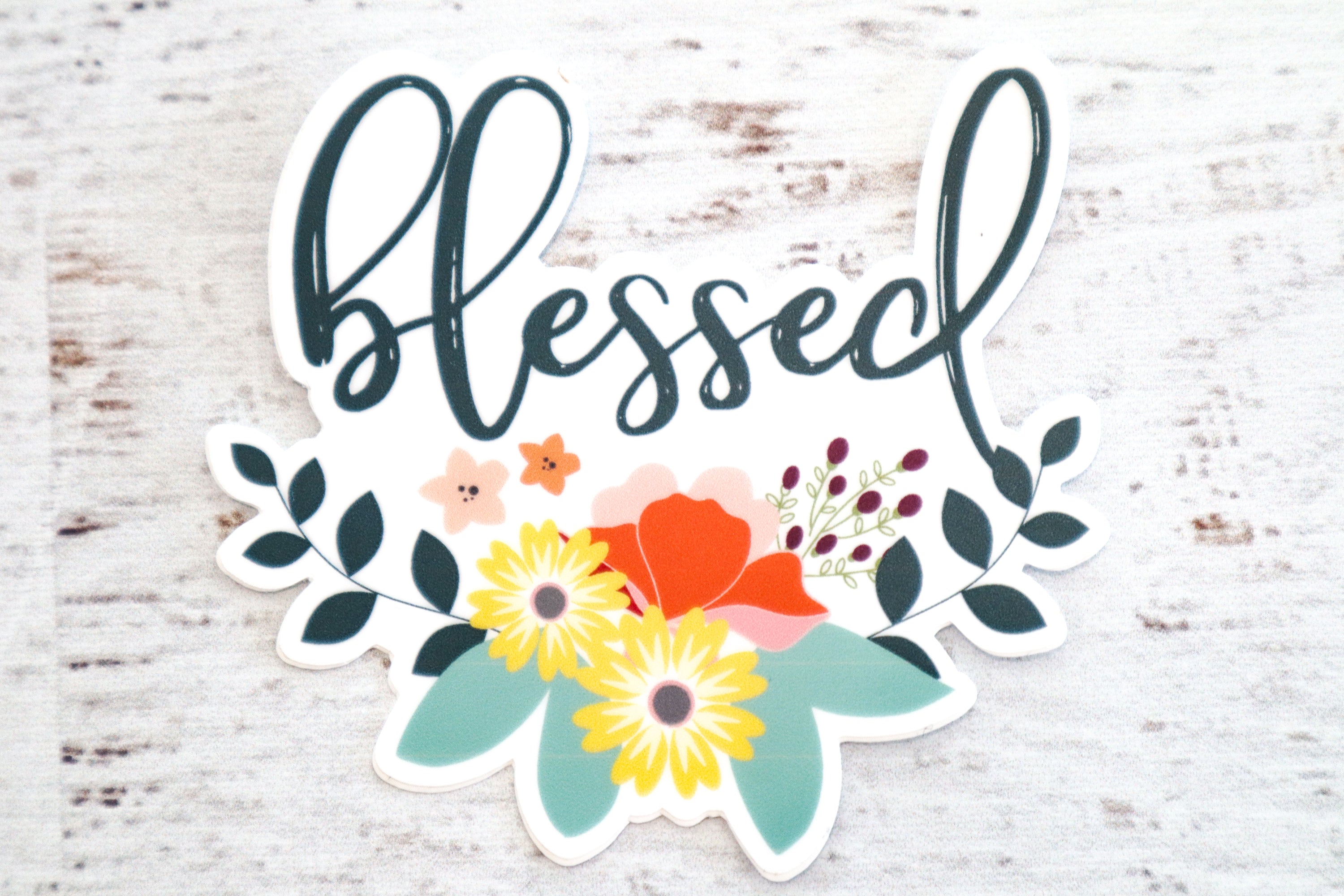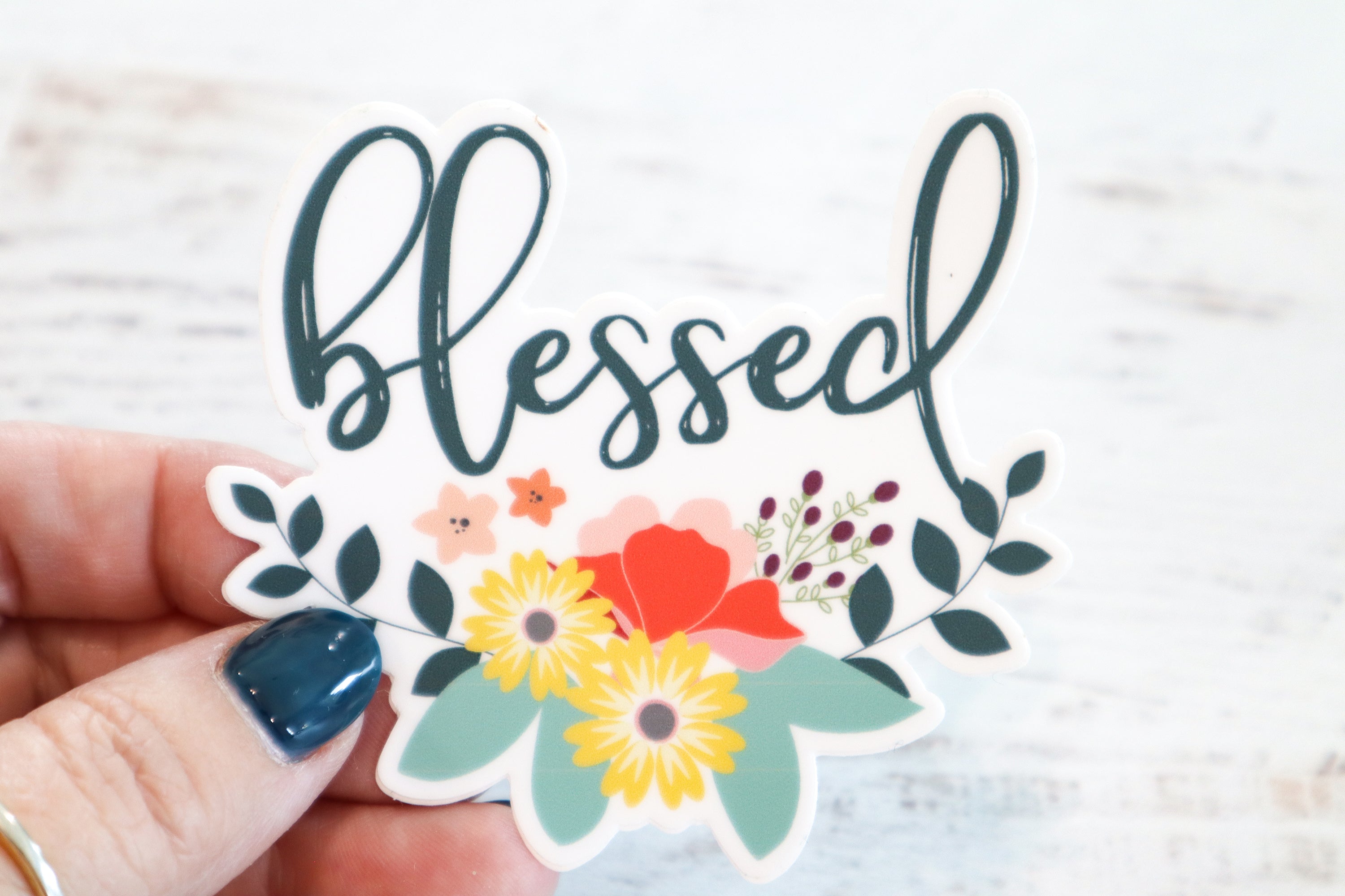 Add some fun flair to your water bottle, planner or laptop with this sweet Floral "Blessed" vinyl sticker!