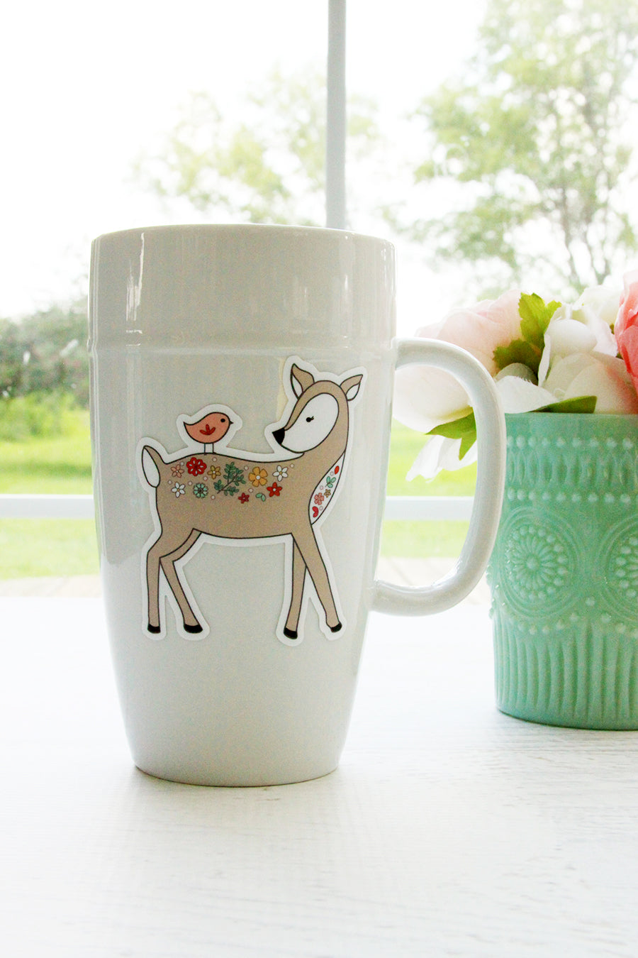 Size is 3" x 3". Order includes one floral deer vinyl sticker. Sale only includes sticker, planner and mug are not included.
