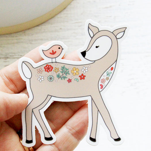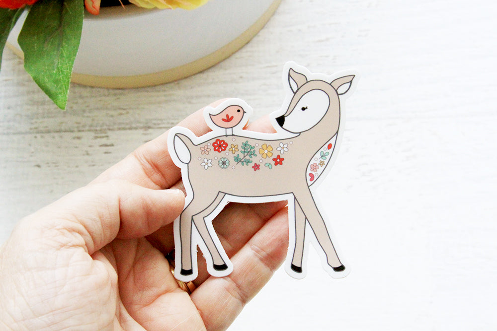 Add some fun flair to your water bottle, planner or laptop with this sweet floral deer vinyl sticker!