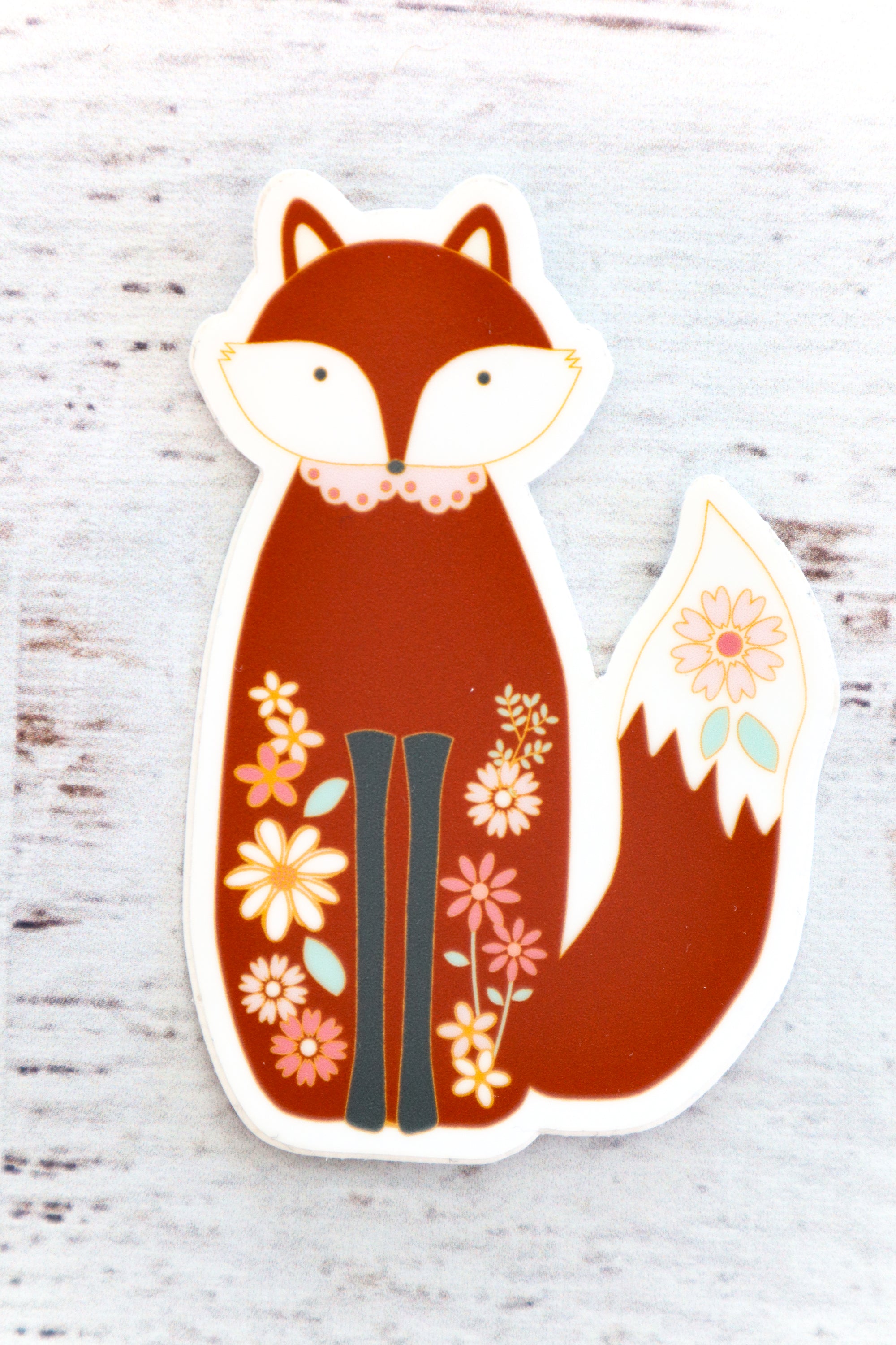 Add some fun flair to your water bottle, planner or laptop with this sweet Floral Fox vinyl sticker!