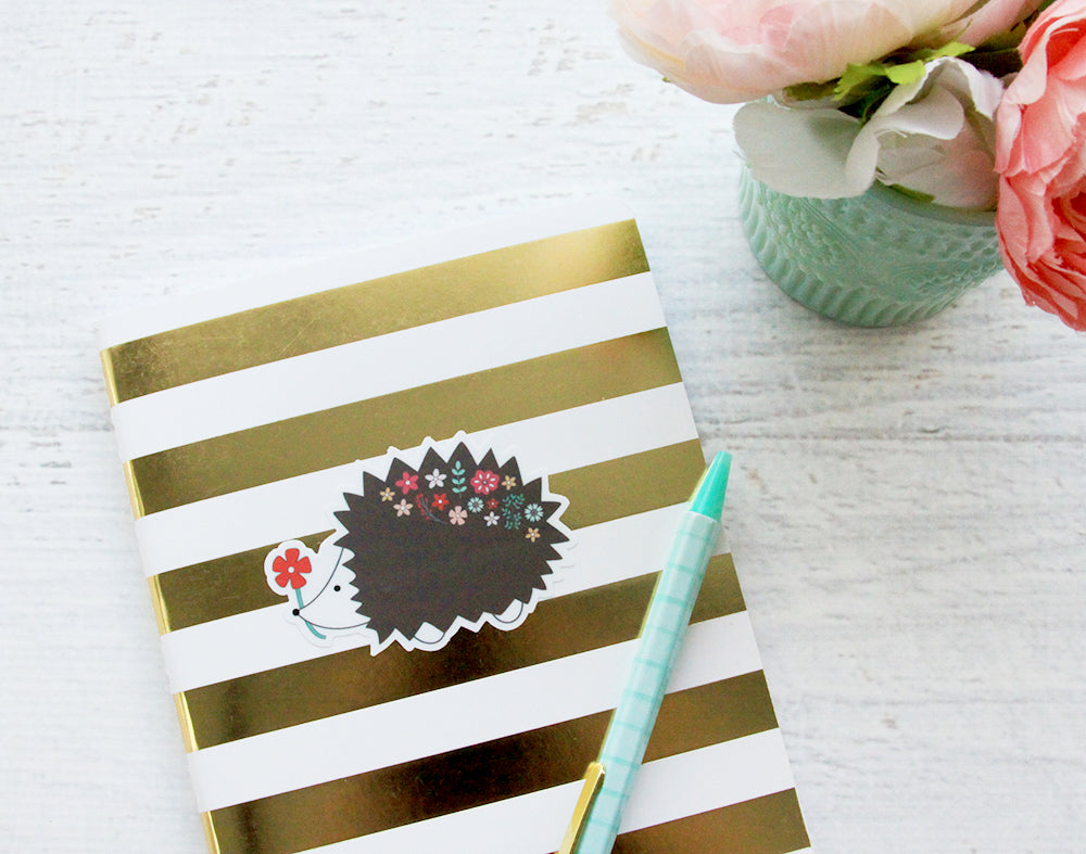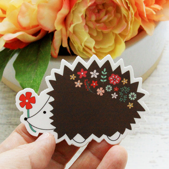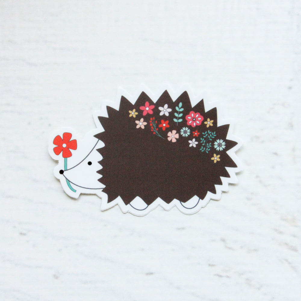 Add some fun flair to your water bottle, planner or laptop with this sweet floral hedgehog vinyl sticker!