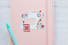 Size is 3" x 3". Order includes one floral sewing machine vinyl sticker. Sale only includes sticker, planner and mug are not included.