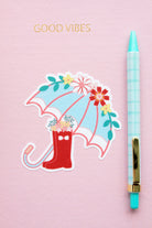 Floral Umbrella and Boots Sticker