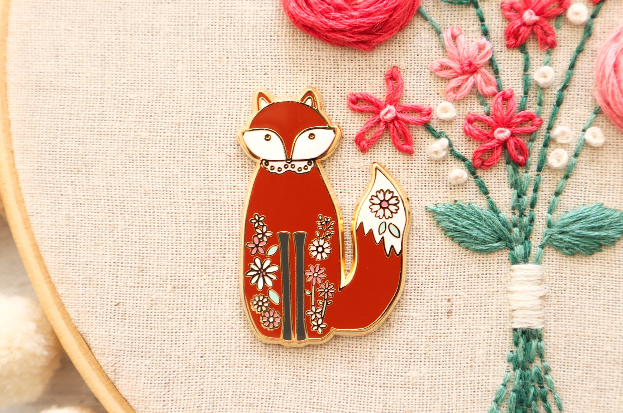 This darling floral fox is all set to help you with your stitchy projects! Her name is Francine and she is all dressed up with pretty woodland florals and a sweet scalloped collar!