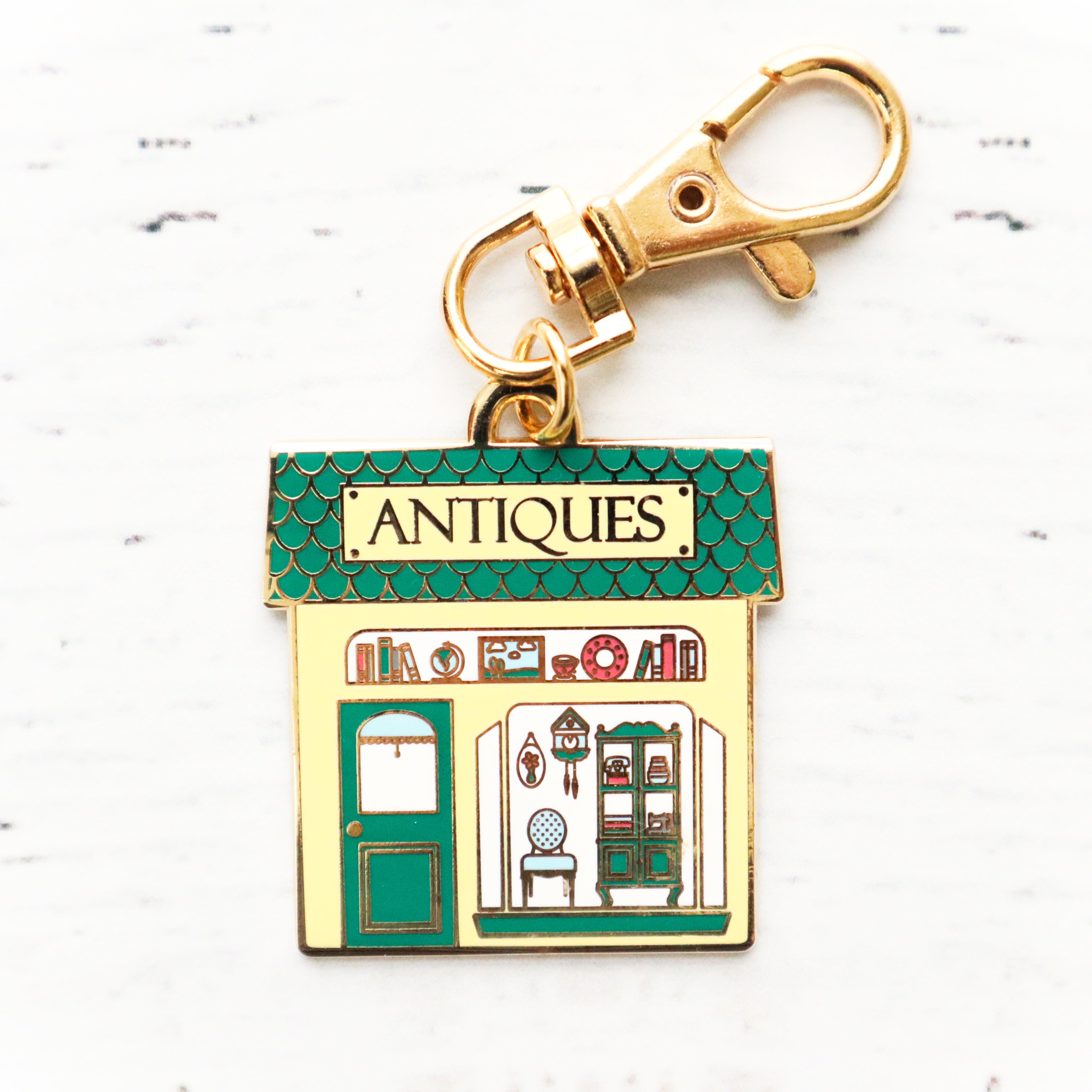 This Enamel Charm is so fun for adding to all sorts of projects! It has a gold lobster clasp at the top that is perfect for clipping to a zipper pull, key chain, or anything else you find that needs a sweet Antique Shop charm on it!