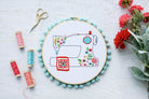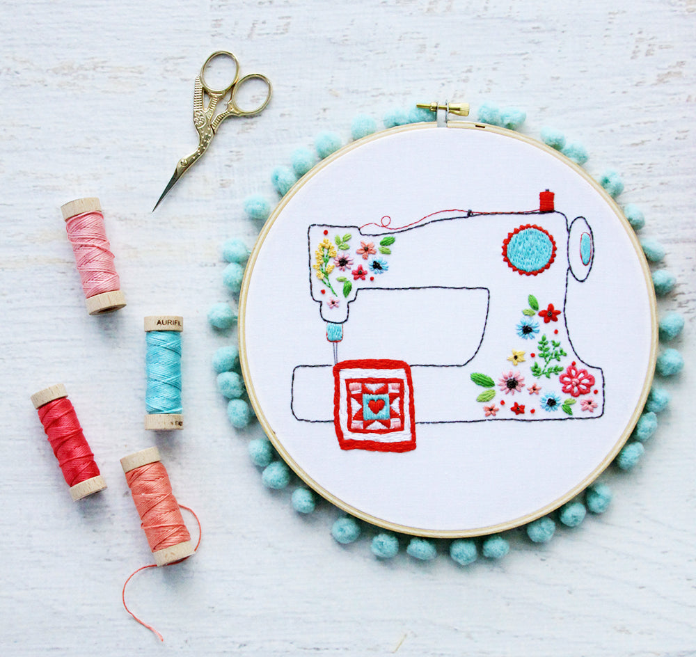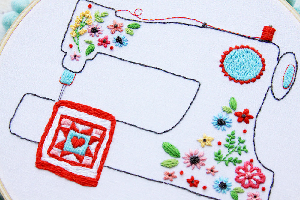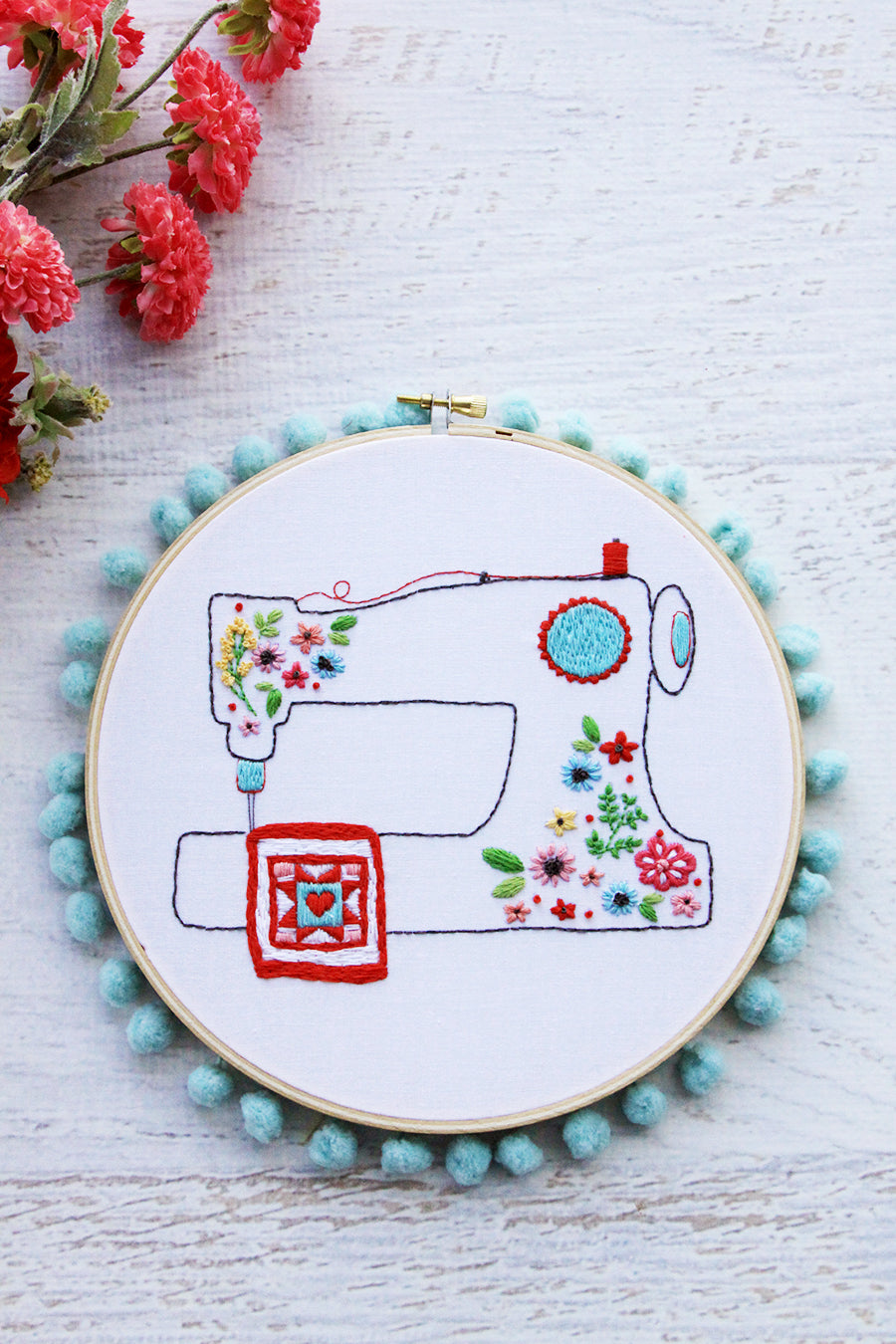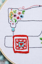 Everyone needs a sweet sewing machine all decorated with flowers! This fun embroidery design is perfect for anyone who loves sewing and quilting - it even has a darling little quilt block in progress!