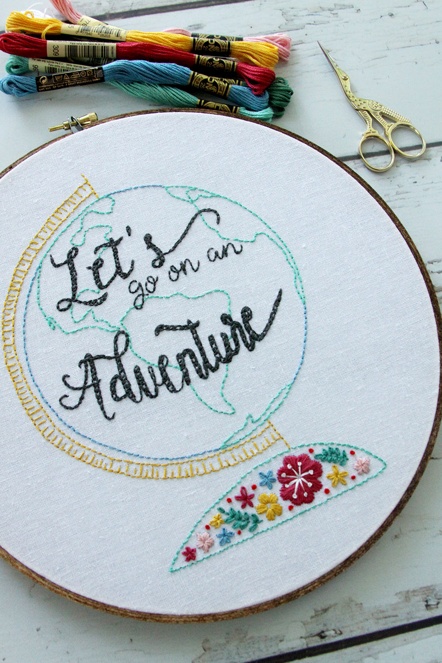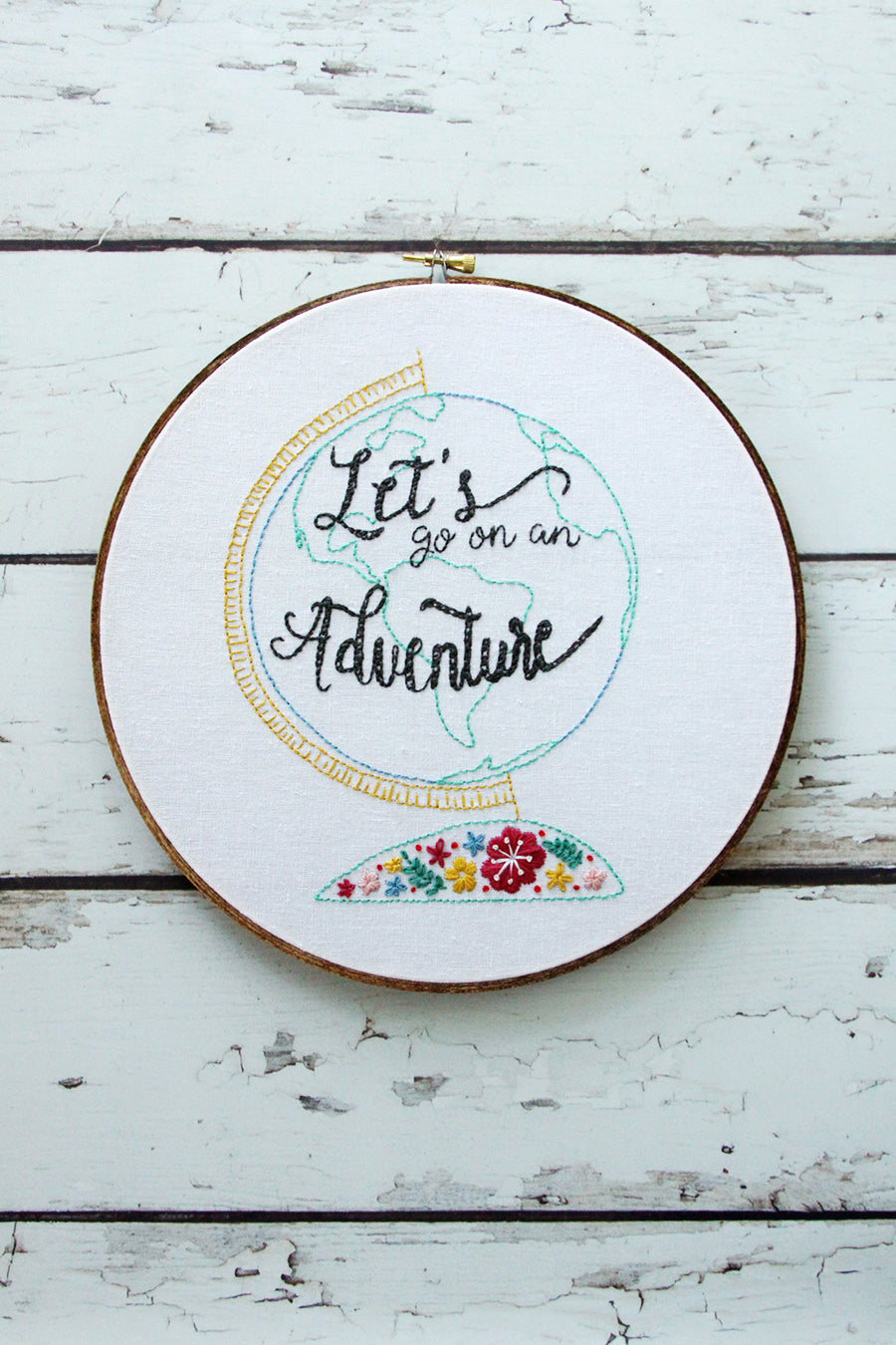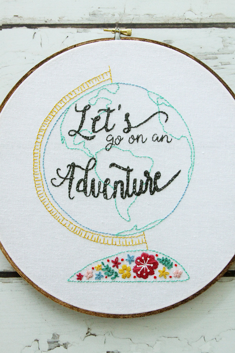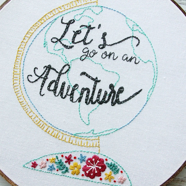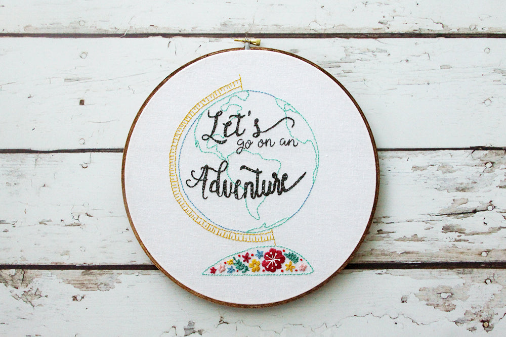 Show off your love for all things Adventure with this sweet vintage style floral globe embroidery pattern! It’s so sweet left in the hoop or it would be prefect for a pillow or as the centerpiece in a mini quilt!