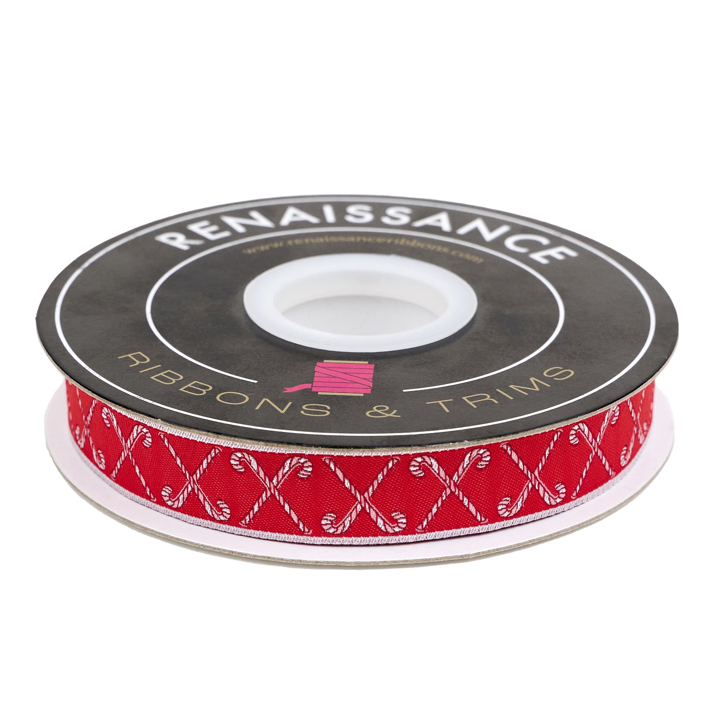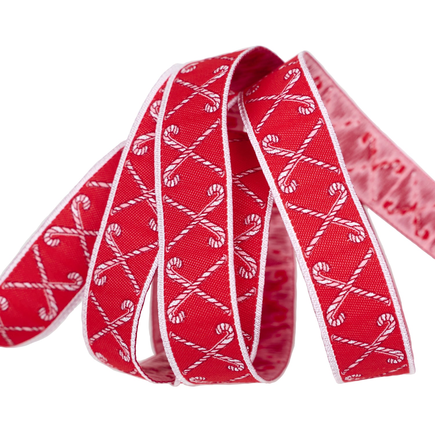 Mistletoe and Holly – Criss Cross Candy Canes Ribbon (3/4" wide)