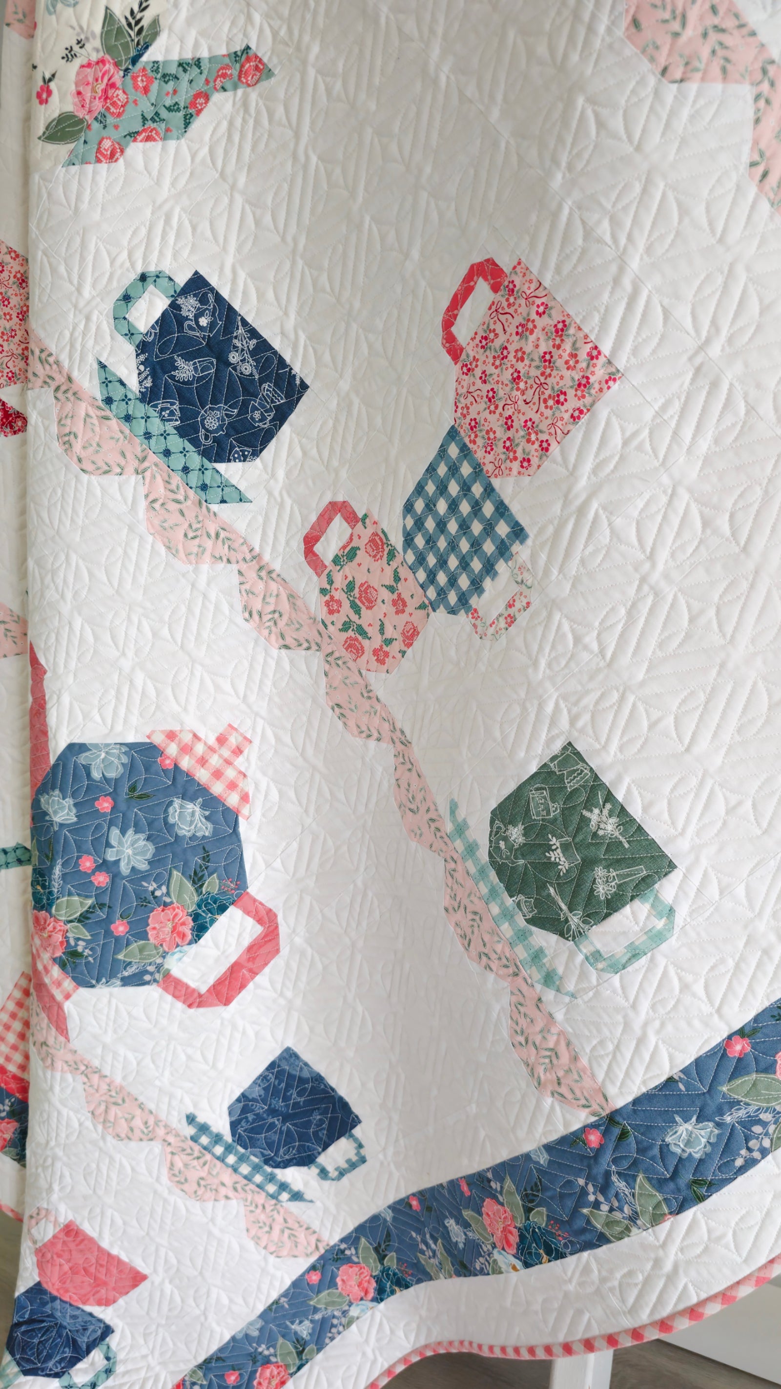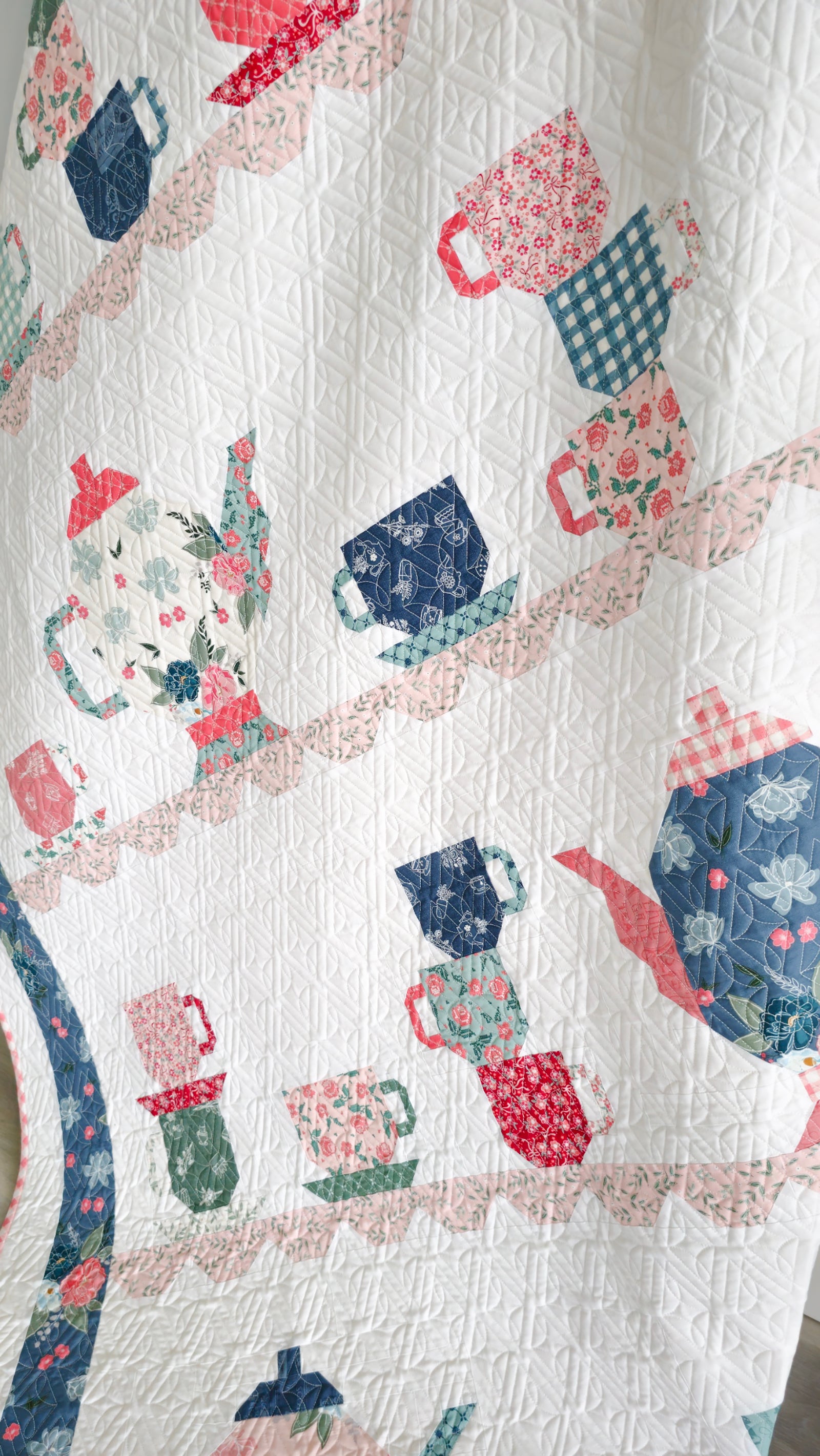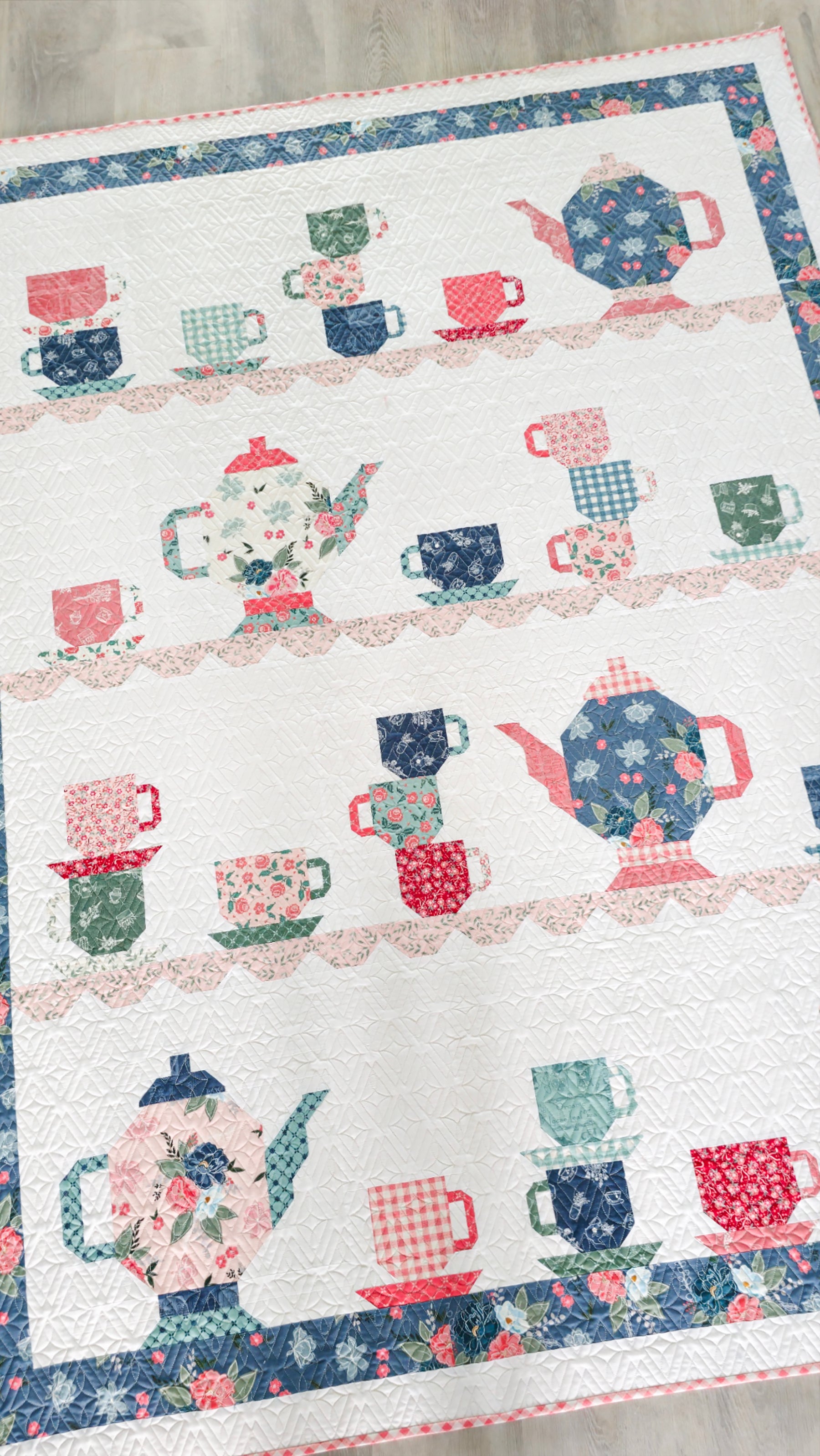 It's time for tea! This darling Tea Party quilt is made up of an assortment of teacups and teapots, all on sweet shelves. This quilt is fat quarter friendly and so fun to sew! I will be hosting a sew along with this pattern in January 2024 - I'd love for you to join me!